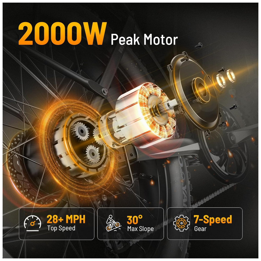 Cada bicicleta do kit conta com motor elétrico com potência de pico de até 2000W, permitindo atingir velocidades superiores a 45 km/h, com boa resposta em subidas e trechos inclinados. A bateria de íons de lítio de 48V e 15Ah, com energia de 720Wh, é removível e bloqueável, oferecendo autonomia estimada de até 65 km em modo de assistência ao pedal e cerca de 35 km em uso predominante no acelerador, variando conforme terreno, modo de condução e peso do usuário.