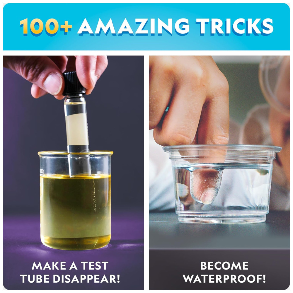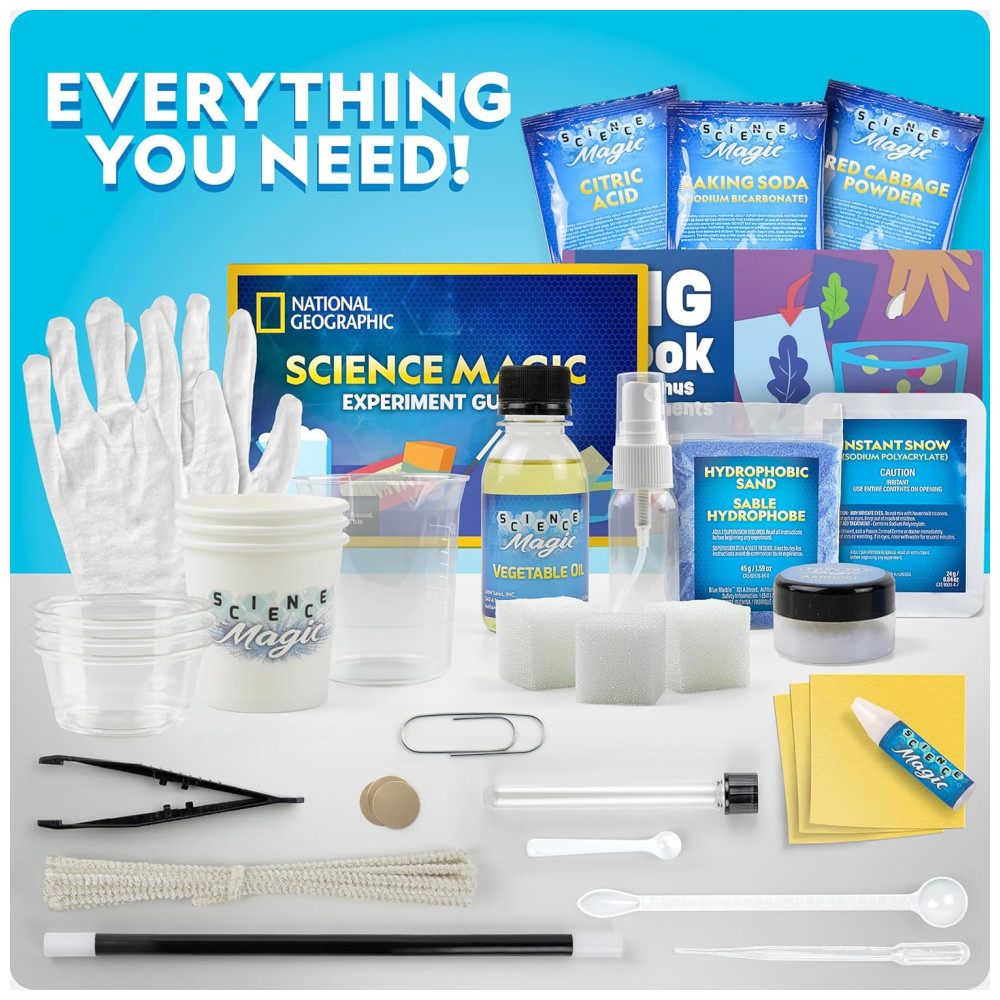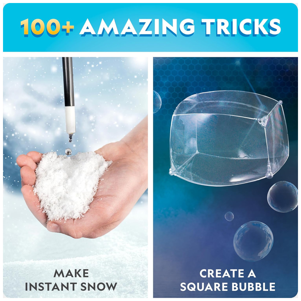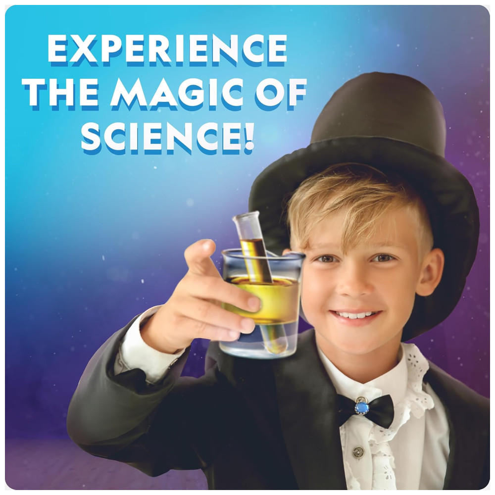 MOSTRE PARA OS AMIGOS E A FAMÍLIA Cada experiência é especialmente projetada para ser realizada como um truque de mágica A varinha mágica incluída e as luvas brancas permitem que seus filhos vistam o papel também. Magia para crianças nunca foi tão divertida e educativa