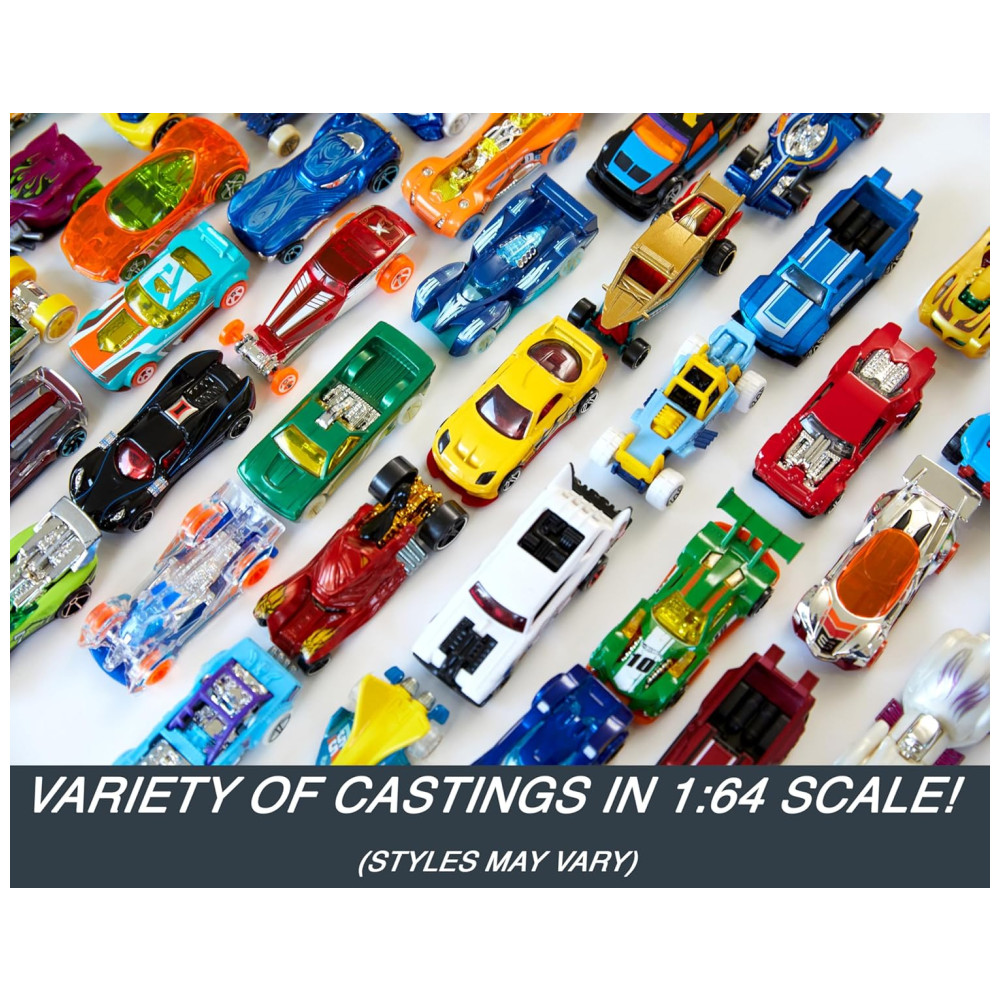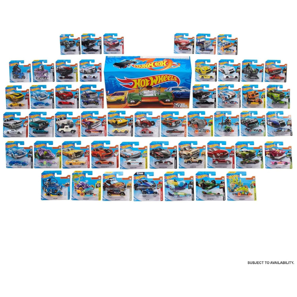 Cada veículo do pacote apresenta decorações atraentes e detalhes autênticos que os fãs de Hot Wheels e aficionados por carros adoram. Vários mixes de 50 pacotes são lançados ao longo do ano com uma variedade surpresa de carros, caminhões ou veículos de resgate de brinquedo em cada um. Os estilos podem variar. O conjunto vem em uma caixa da marca para armazenamento refrigerado, e cada veículo é embalado individualmente em sua própria embalagem para aumentar a capacidade de coleta.