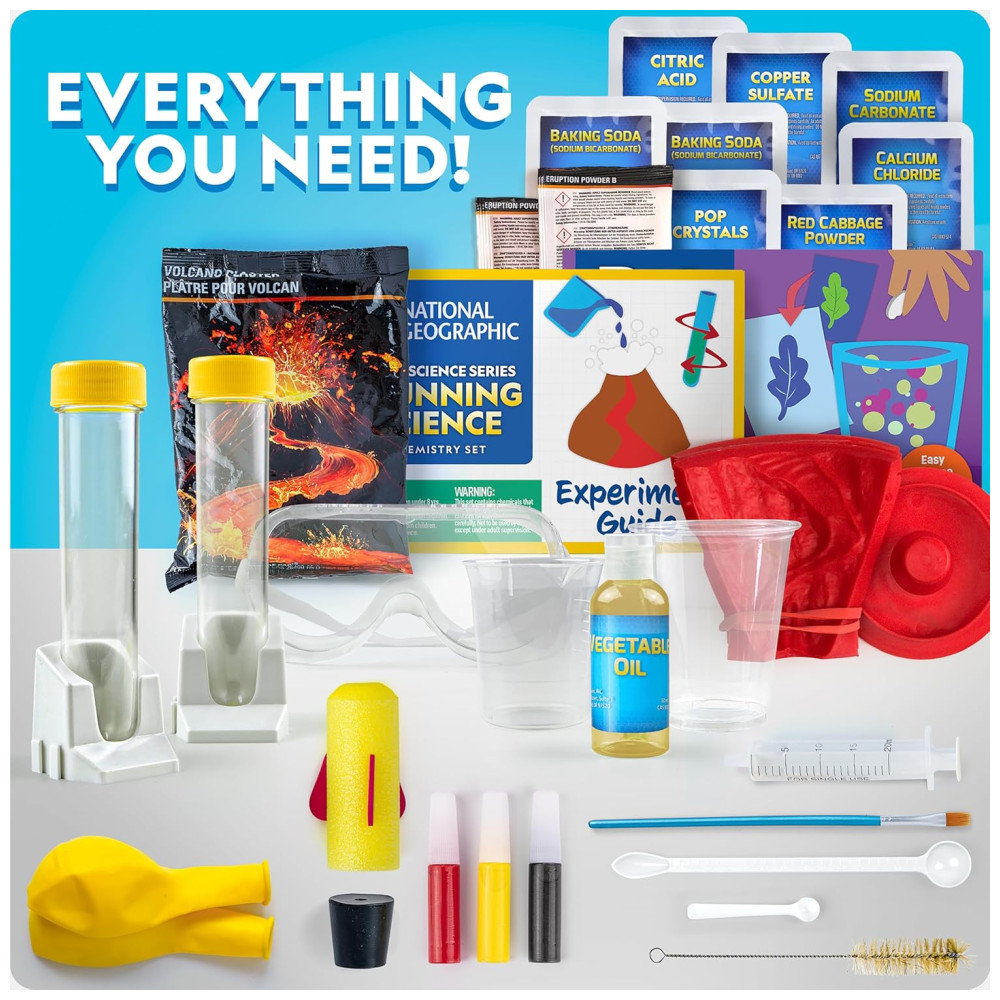 Kit com mais de 15 Experimentos Incluindo Vulcão em Erupção NATIONAL GEOGRAPHIC NGMEGACHEMX Azul