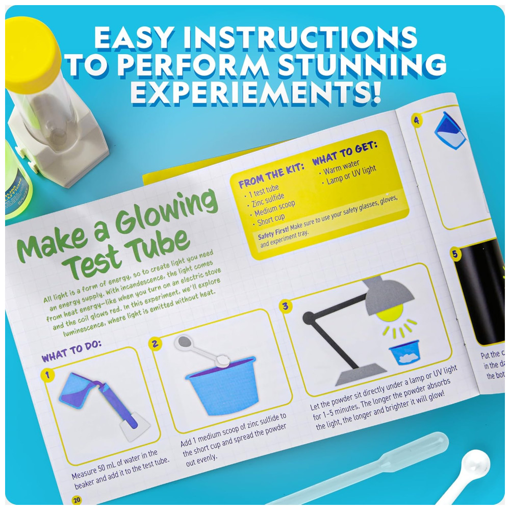 INSTRUÇÕES FÁCEIS DE SEGUIR O guia de experiências neste kit possui instruções para crianças com ilustrações para cada etapa e uma visão fascinante das reações químicas.