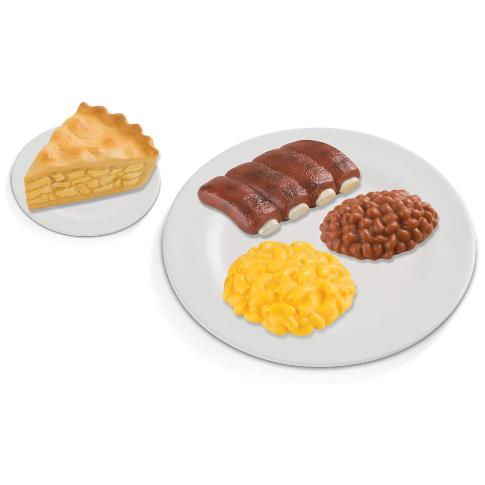 Este conjunto de brinquedos é composto por 17 peças de comida realista e durável, perfeito para crianças a partir de três anos. As peças são sólidas e realisticamente detalhadas, permitindo que as crianças criem refeições improvisadas e aprendam sobre nutrição e a importância de uma alimentação balanceada. O conjunto inclui proteínas como costelas de churrasco, coxinha de frango, costeletas de cordeiro e salmão, além de legumes como couve flor, feijão verde e cenoura, e grãos e amidos como macarrão com queijo, purê de batata e arroz.
