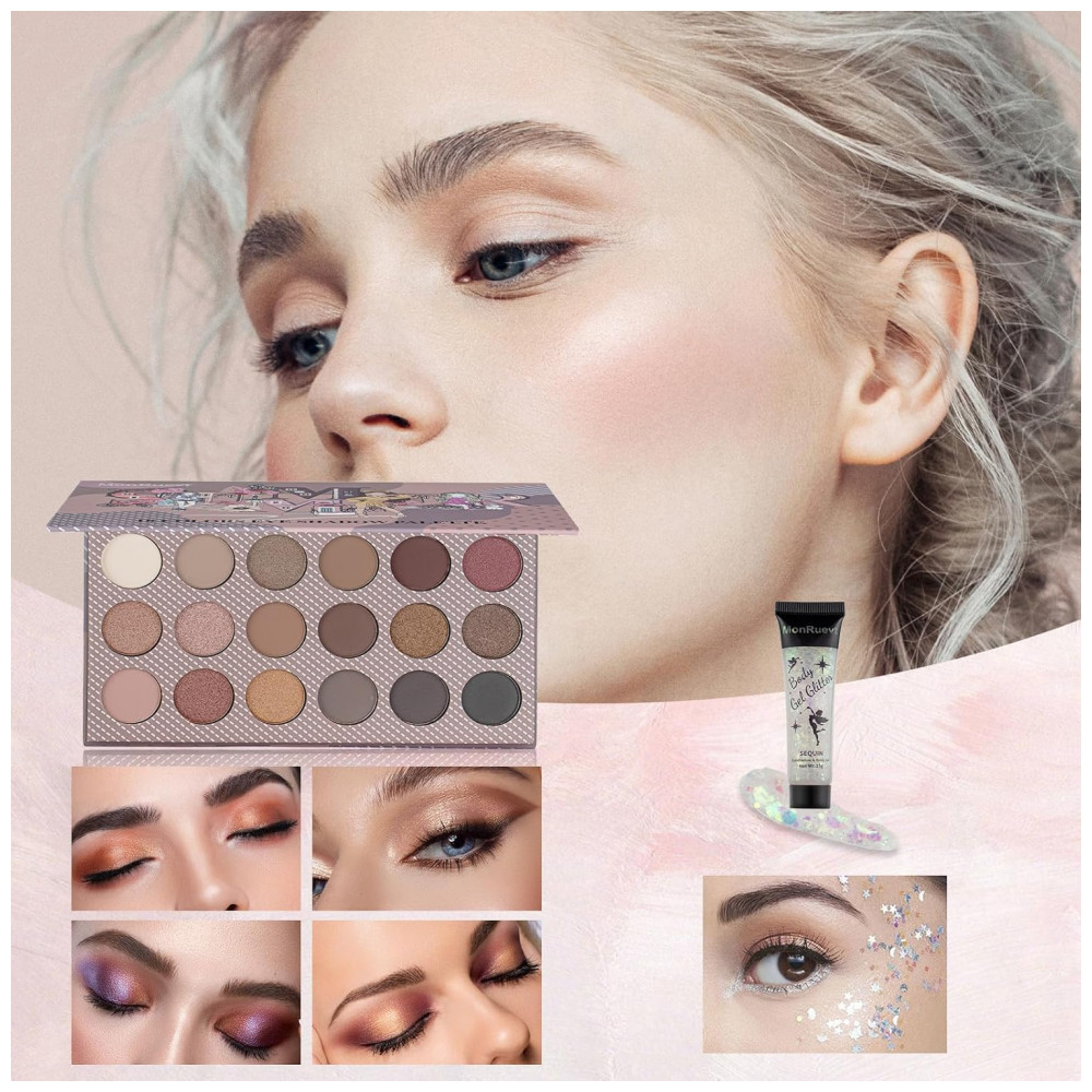 Kit Completo de Maquiagem MONRUEVT Paleta 18 Cores para Iniciantes Estojo Portátil com Pincéis e Esponja