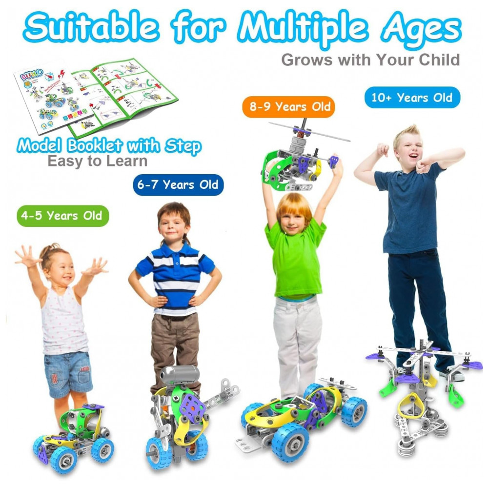 A idade recomendada pelo fabricante é a partir de 5 anos, adequada para crianças que já conseguem seguir ilustrações detalhadas, montar peças menores e compreender orientações básicas de ligação do motor. Nessa faixa etária, as crianças podem iniciar com modelos mais simples e evoluir gradualmente para estruturas mais complexas, acompanhando os diferentes níveis de montagem propostos no manual.