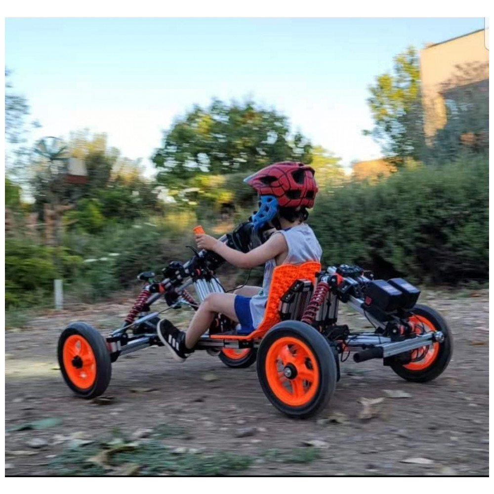 As peças principais do Go Kart Kit são fabricadas com alumínio anodizado de excelente qualidade, garantindo durabilidade e resistência à corrosão. As peças plásticas modulares, feitas de fibra de vidro especial, são tão resistentes quanto o alumínio, proporcionando tranquilidade em relação à segurança das crianças durante o uso.