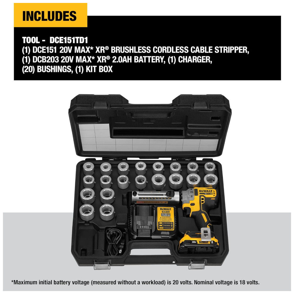 Kit Cortador de Cabo Elétrico Velocidade Variável Luz LED 20V DEWALT DCE151TD1 Amarelo