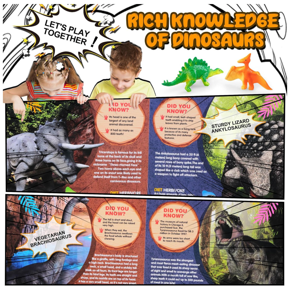 Este conjunto é um ótimo presente para crianças, perfeito para festas de aniversário, fins educacionais e presentes de Natal. Além disso, é fácil de transportar para qualquer lugar, permitindo que as crianças aprendam sobre os dinossauros dentro ou fora de casa. As cores vibrantes dos brinquedos e do livro ajudarão a mergulhar as crianças no mundo dos dinossauros para aprender e se divertir.