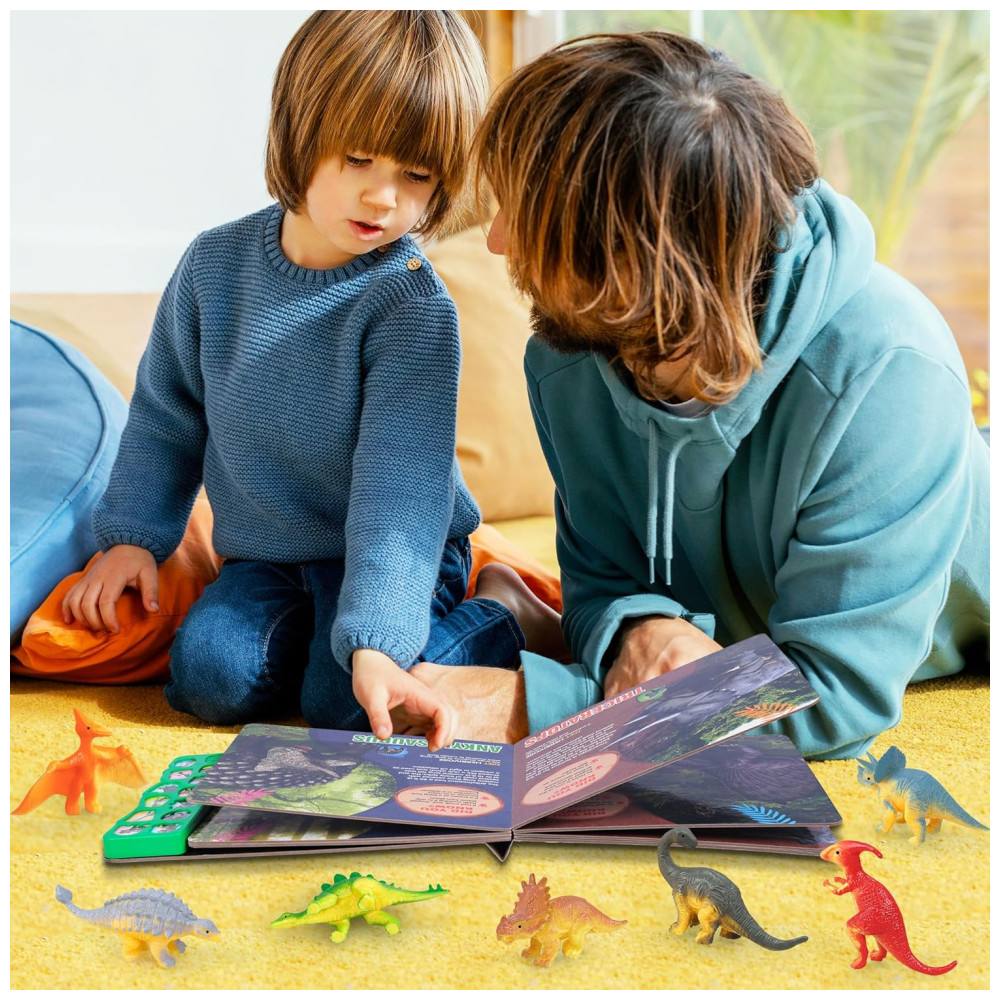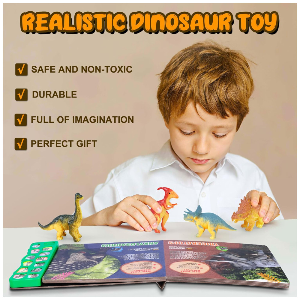 Kit de 12 Dinossauros Realistas com Livro de Sons para Crianças Acima de 3 Anos IVOXEX