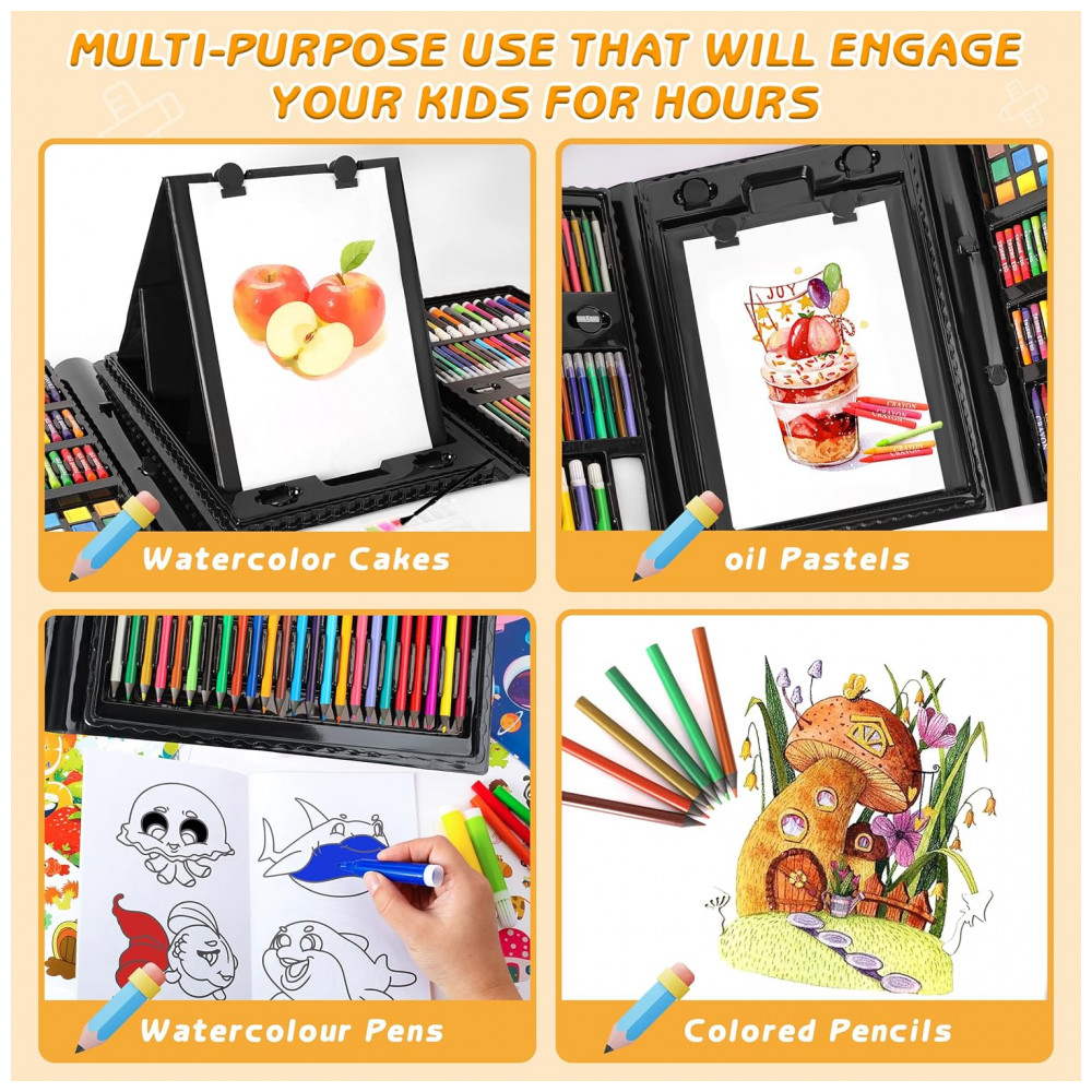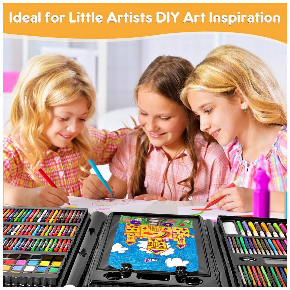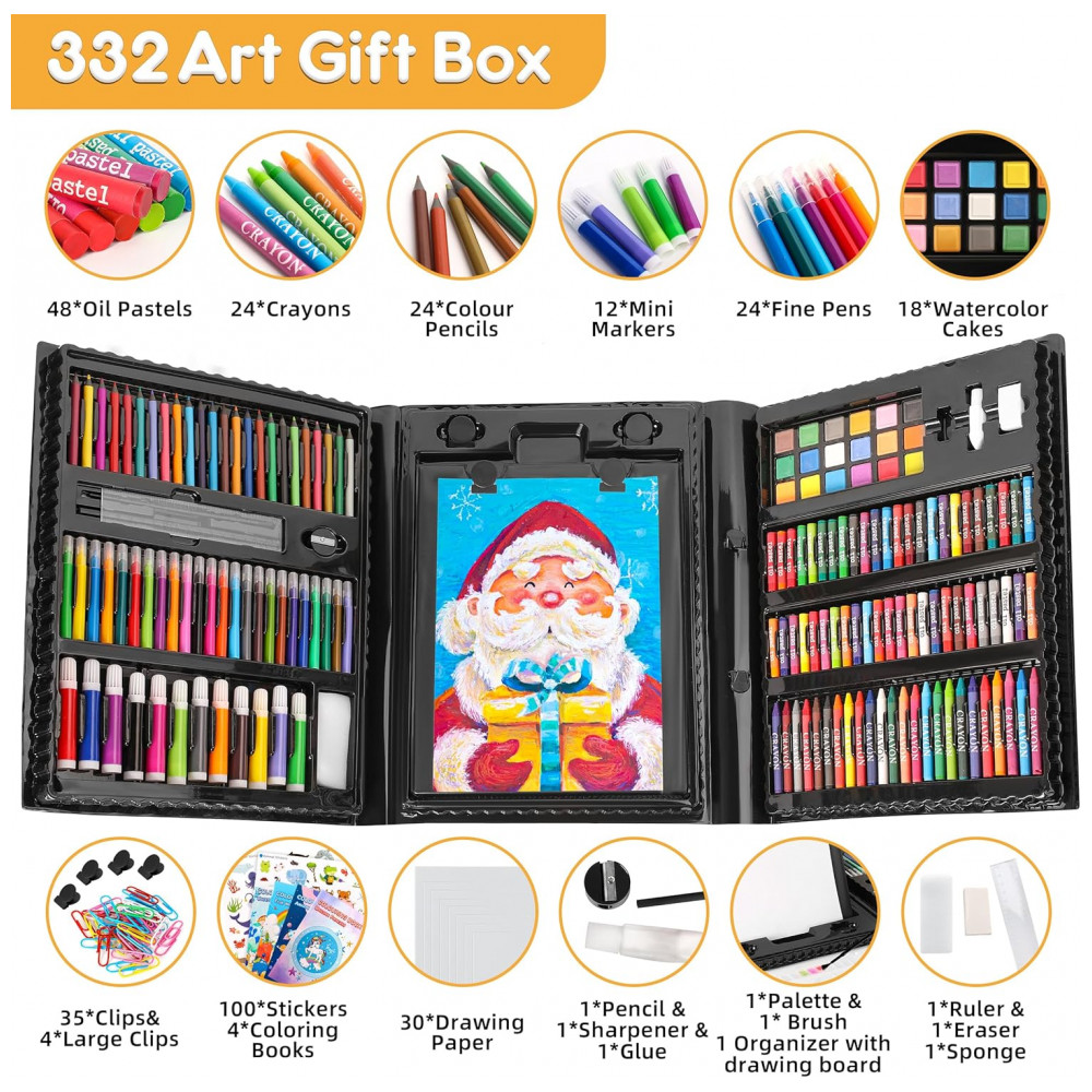 Kit de arte 332 peças TDHDIKE infantil com estojo preto cavalete triplo dupla face papéis livros para colorir pastéis e lápis