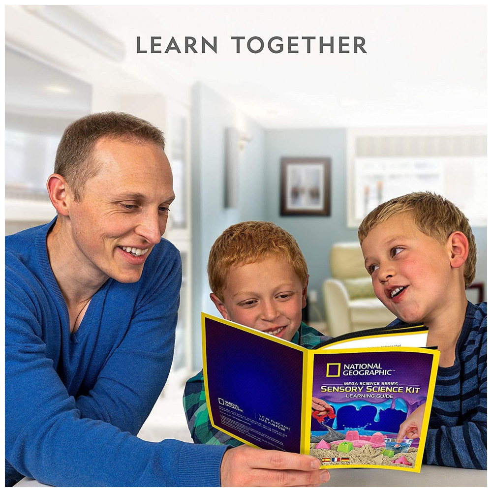 JOGUE MAIS As areias, a massa e o limo são reutilizáveis, proporcionando brincadeiras divertidas, interativas e criativas dia após dia. MELHOR JUNTOS Este é um ótimo pacote de brincadeiras colaborativas para desfrutar com amigos, familiares ou colegas de classe. COLOQUE SUA TAMPA DE PENSAMENTO Nosso guia de aprendizagem detalhado é repleto de fatos científicos, tornando o o melhor kit de ciência sensorial