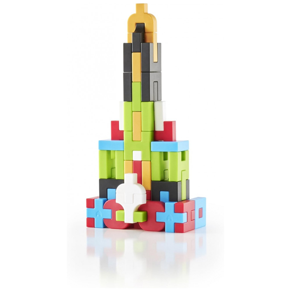 O set inclui 500 blocos em 12 formatos distintos, permitindo criar personagens, animais, veículos, construções arquitetônicas e outros modelos em propostas individuais ou em grupo. O brinquedo é compatível com outros conjuntos IO Blocks, possibilitando expansão de projetos com kits adicionais. O sistema conta ainda com aplicativo gratuito com recursos de realidade aumentada que funciona como guia virtual de montagem quando utilizado com o tapete rastreador incluso, em tablets e smartphones compatíveis.