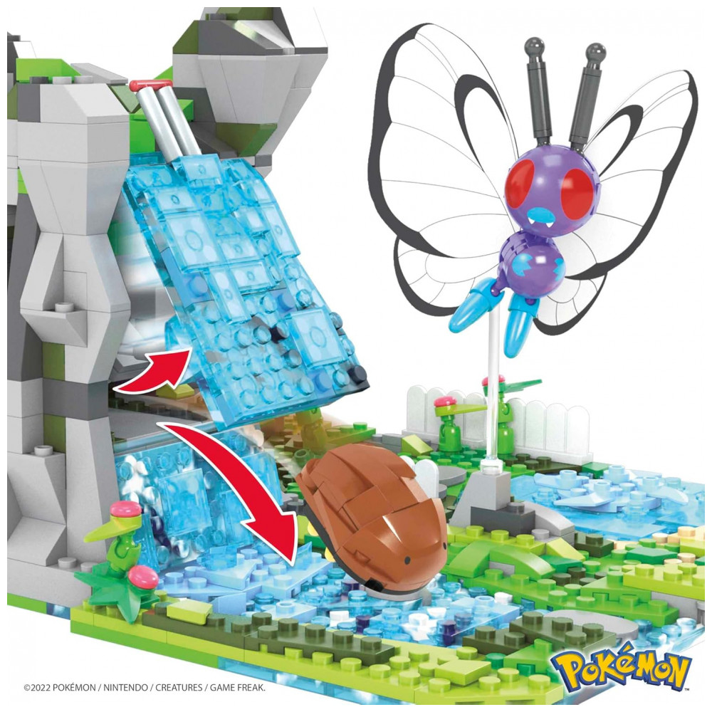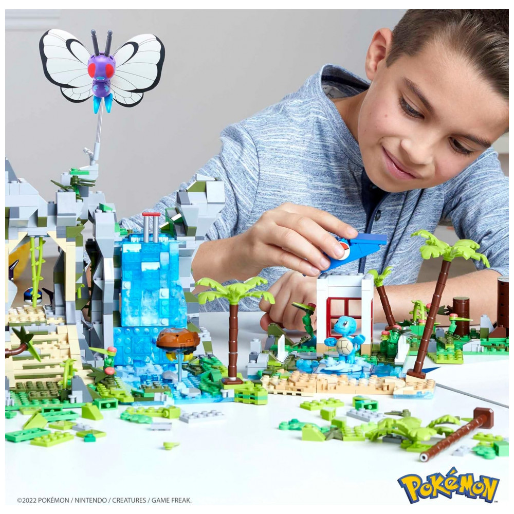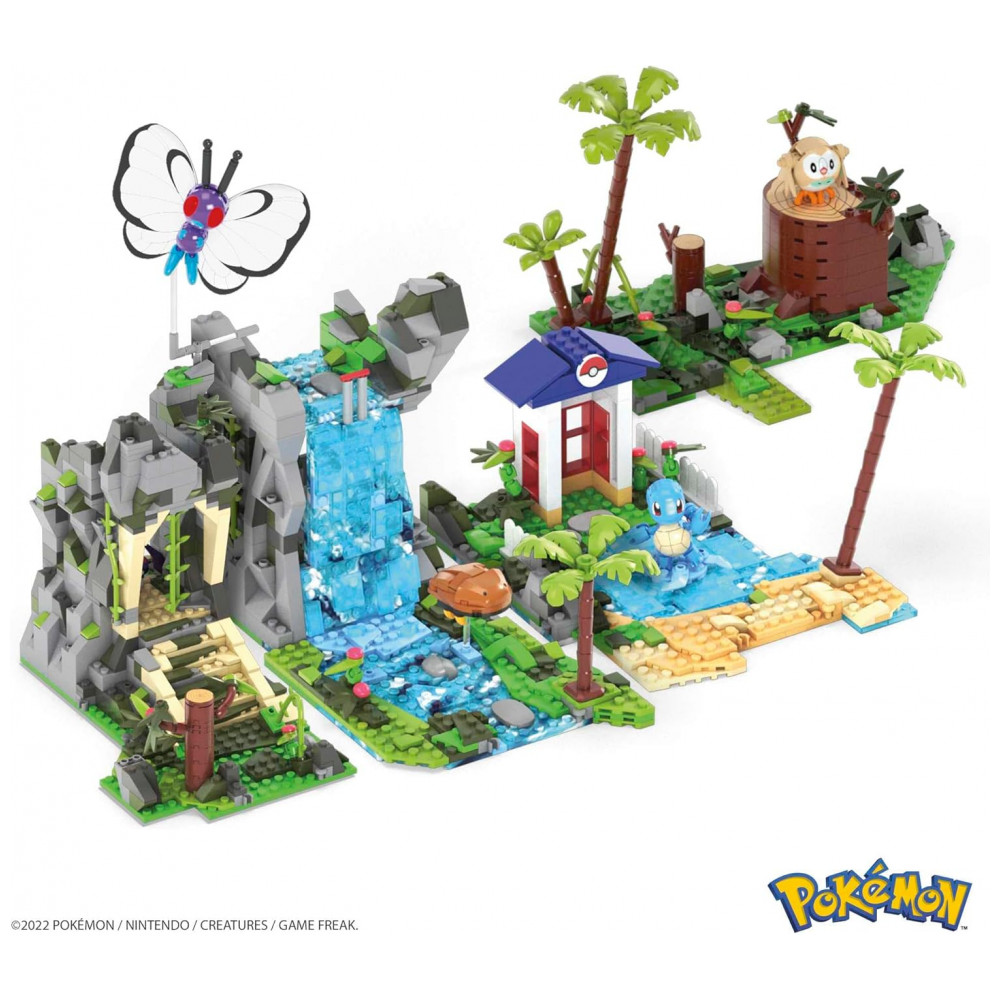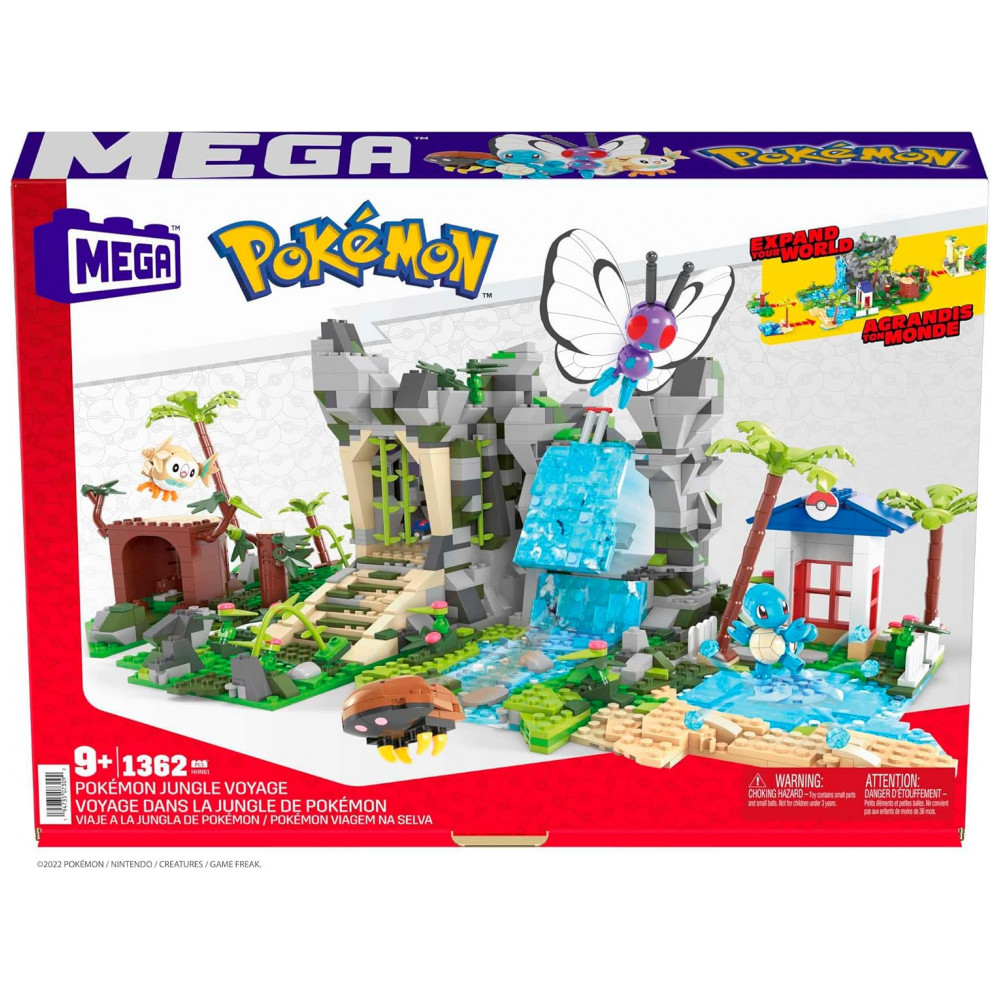 Kit de blocos MEGA Pokémon Jungle Voyage Mattel 1362 peças cenário modular com Butterfree Squirtle Kabuto Rowlet