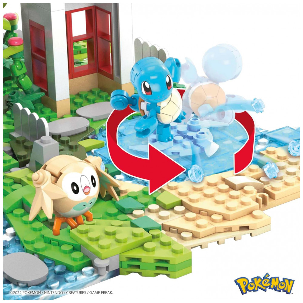 O conjunto inclui figuras montáveis de Butterfree, Squirtle, Kabuto e Rowlet, articuladas em pontos básicos para composição de cenas de exploração. As peças são compatíveis com outros sets MEGA Pokémon e blocos de marcas similares, podendo ser conectadas a outros cenários da série Adventure Builder para ampliação do ambiente construído.