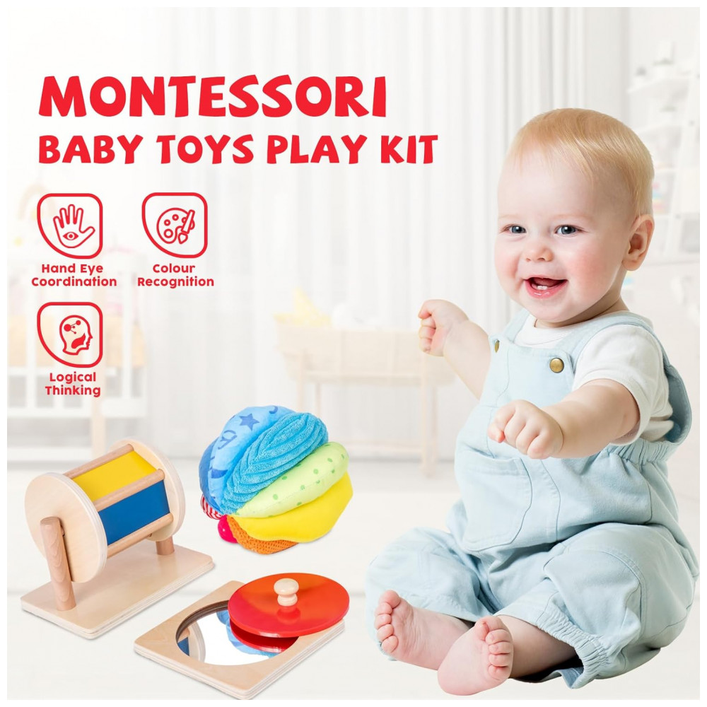 Kit de Brinquedo Montessori 3 em 1 para Bebês de 6 a 12 Anos Adena Montessori