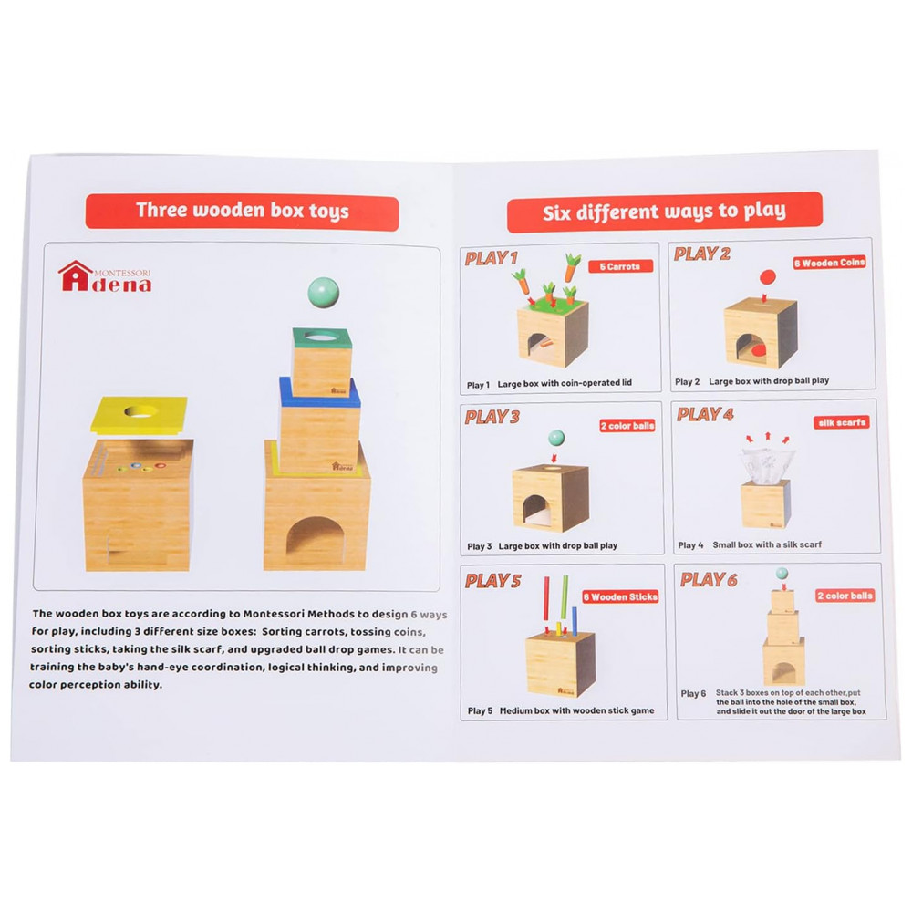 Kit de Brinquedo Montessori 6 em 1 com Caixas de Empilhar e Outras Atividades Adena Montessori