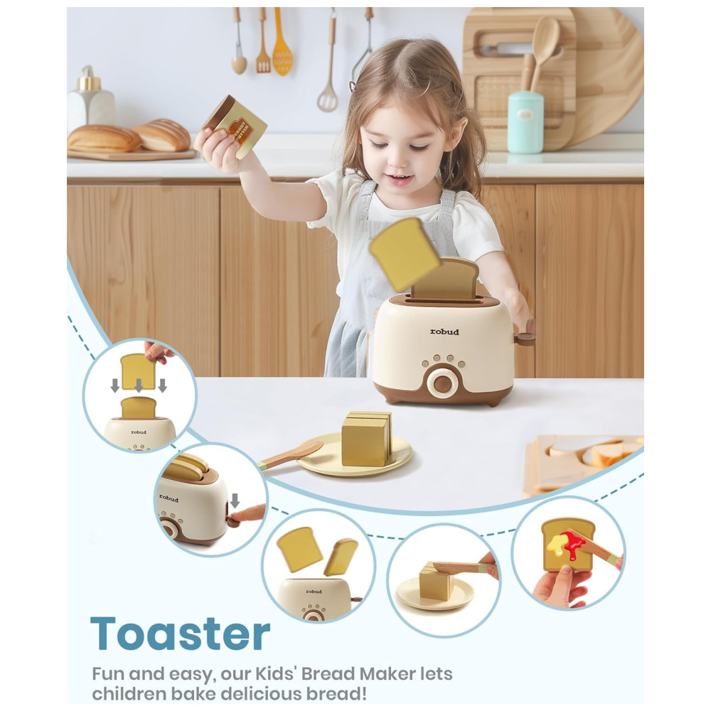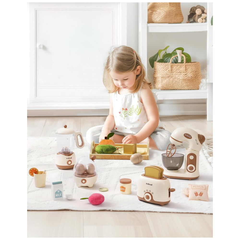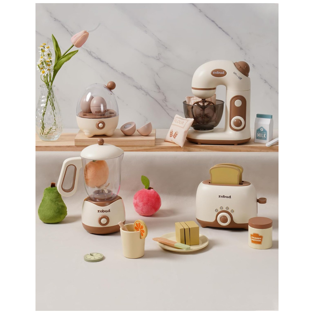 Kit de Brinquedos de Cozinha Educativa ROBUD Mini Eletrodomésticos para Crianças com Fritadeira Batedeira Torradeira e Liquidificador