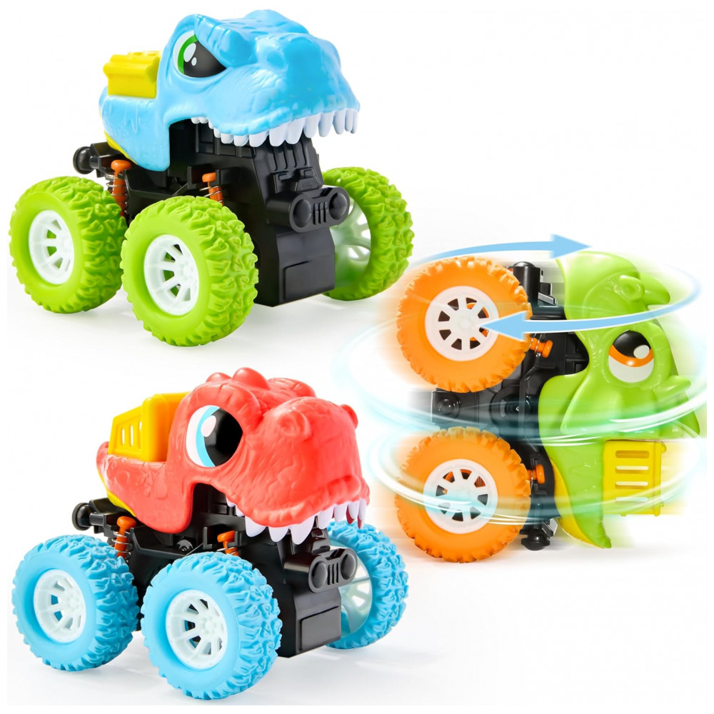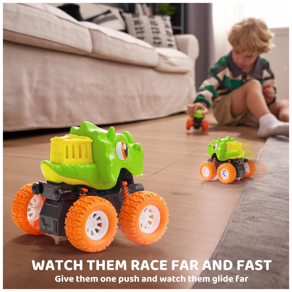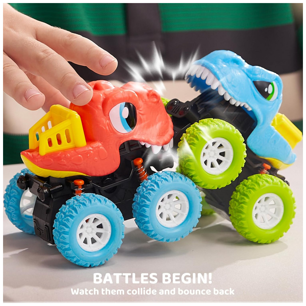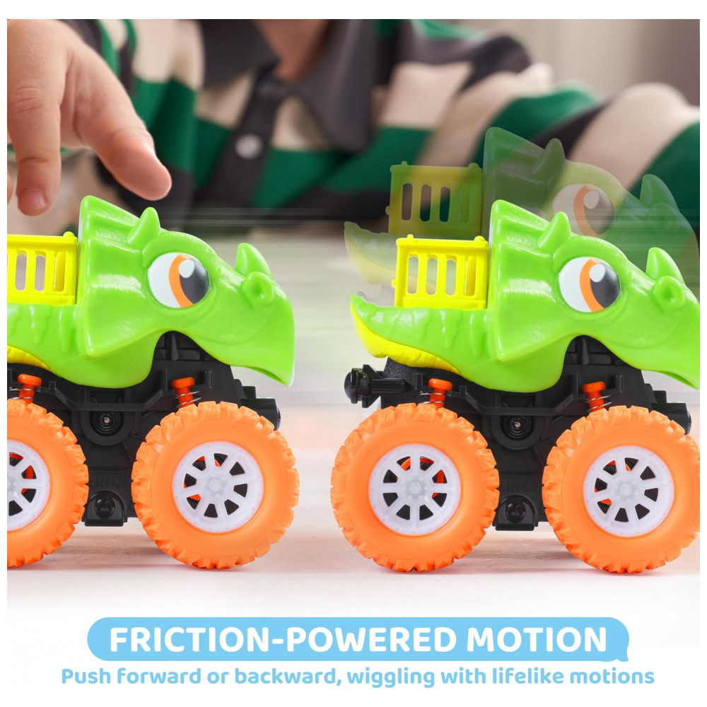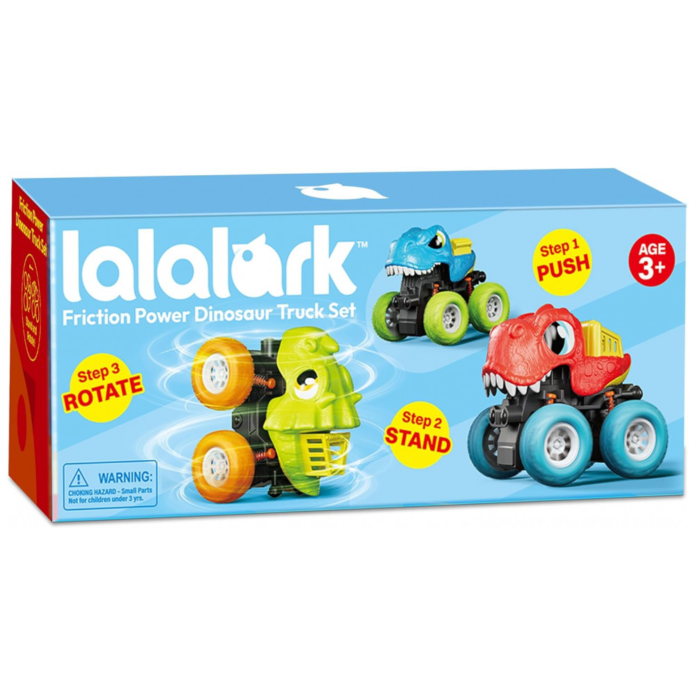 Kit de Brinquedos de Dinossauro para Meninos de 2 3 4 e 5 Anos – 3 Carrinhos Monster Truck com Funcionamento a Fricção Lalalark