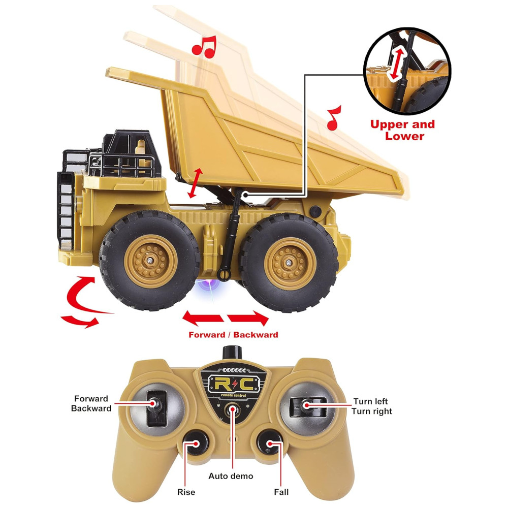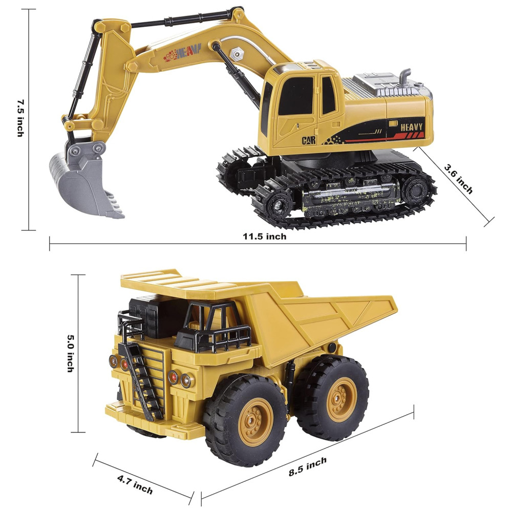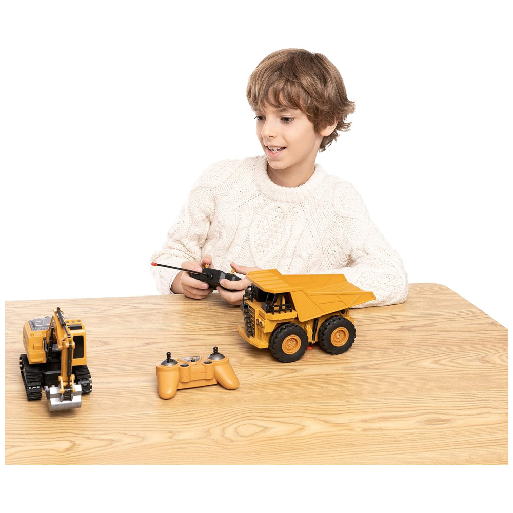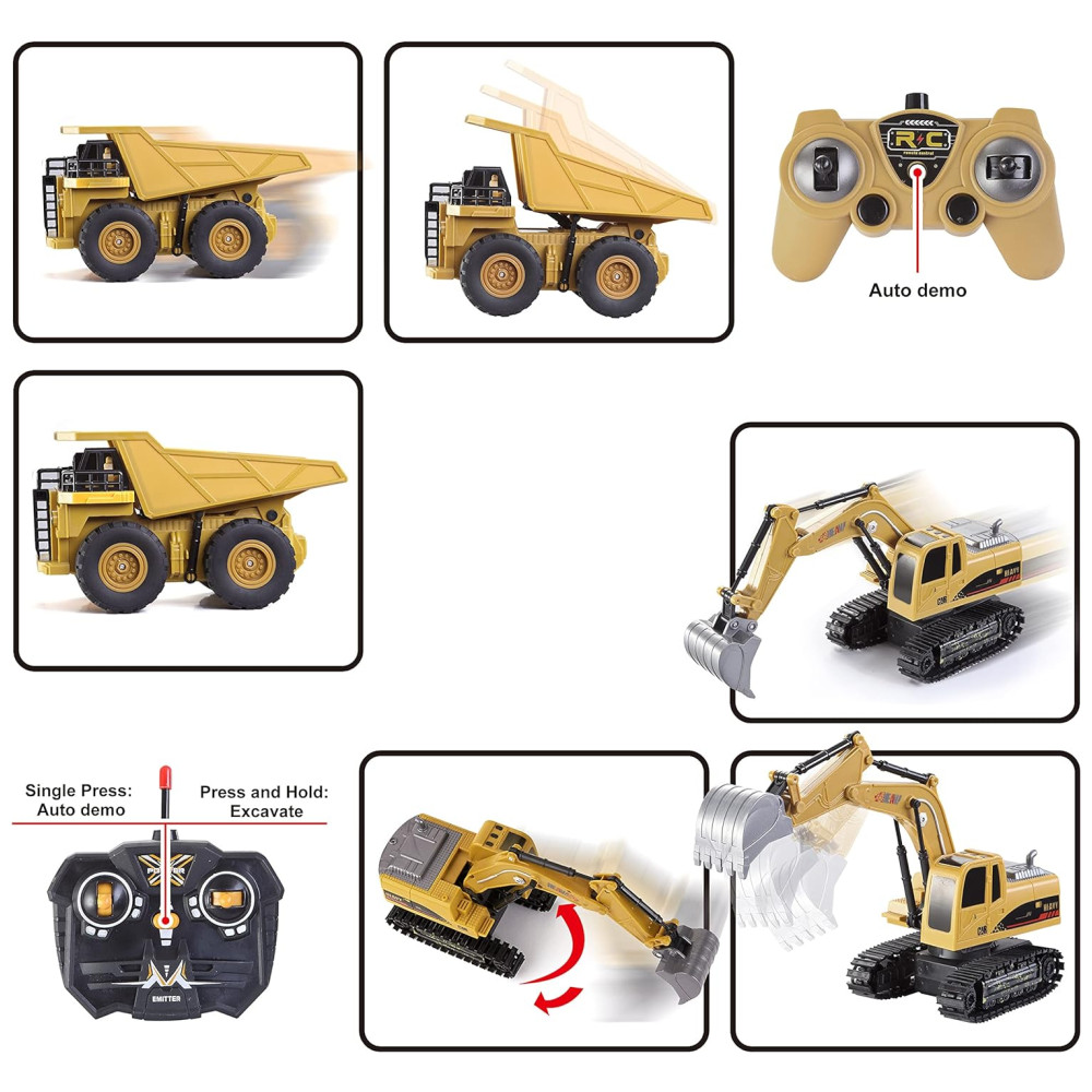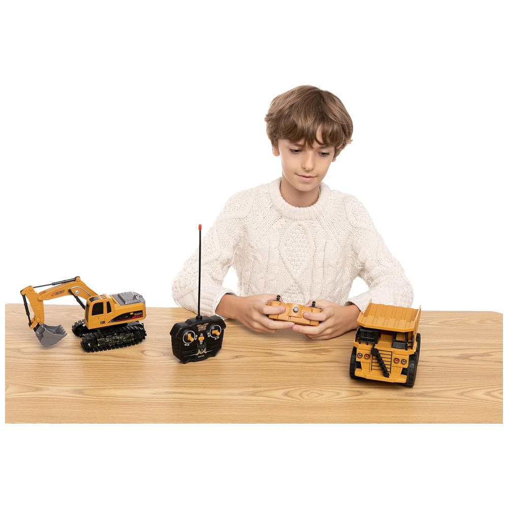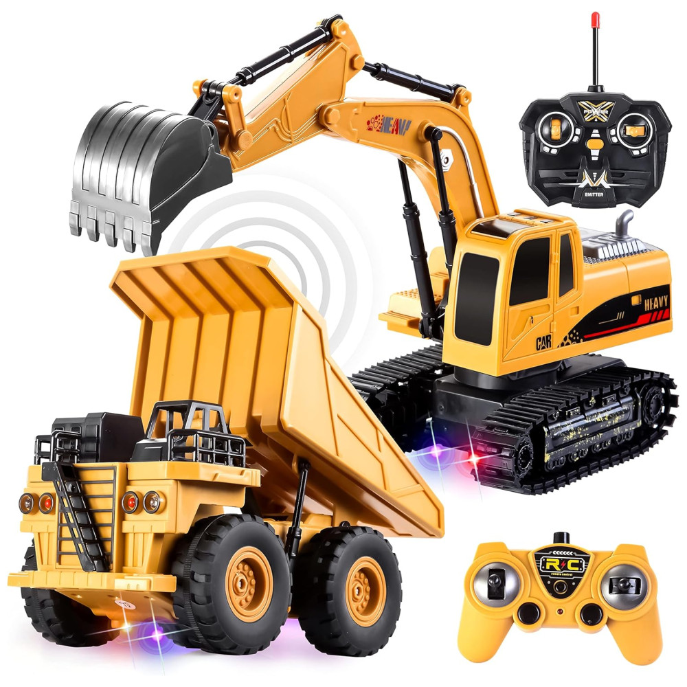 Kit de Brinquedos de Máquinas de Construção RC JOYIN – Escavadeira e Caminhão Basculante com Luzes e Sons para Diversão Infinita