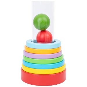Ao contrário dos brinquedos de empilhamento tradicionais, este brinquedo tem um tubo transparente no meio. Os bebês podem jogar a bola e tirá la.