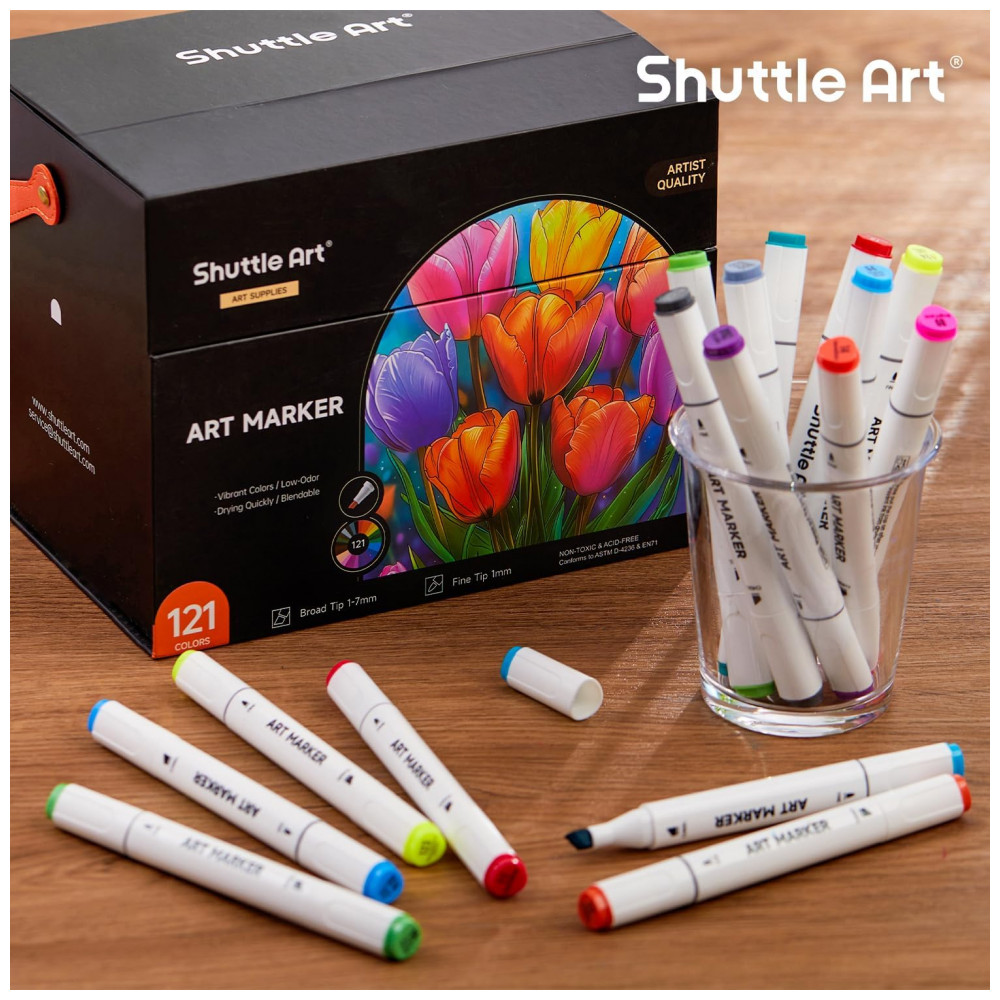 Kit de Canetas Profissionais com Base em Pé e Pontas Duplas 120 Peças Shuttle Art
