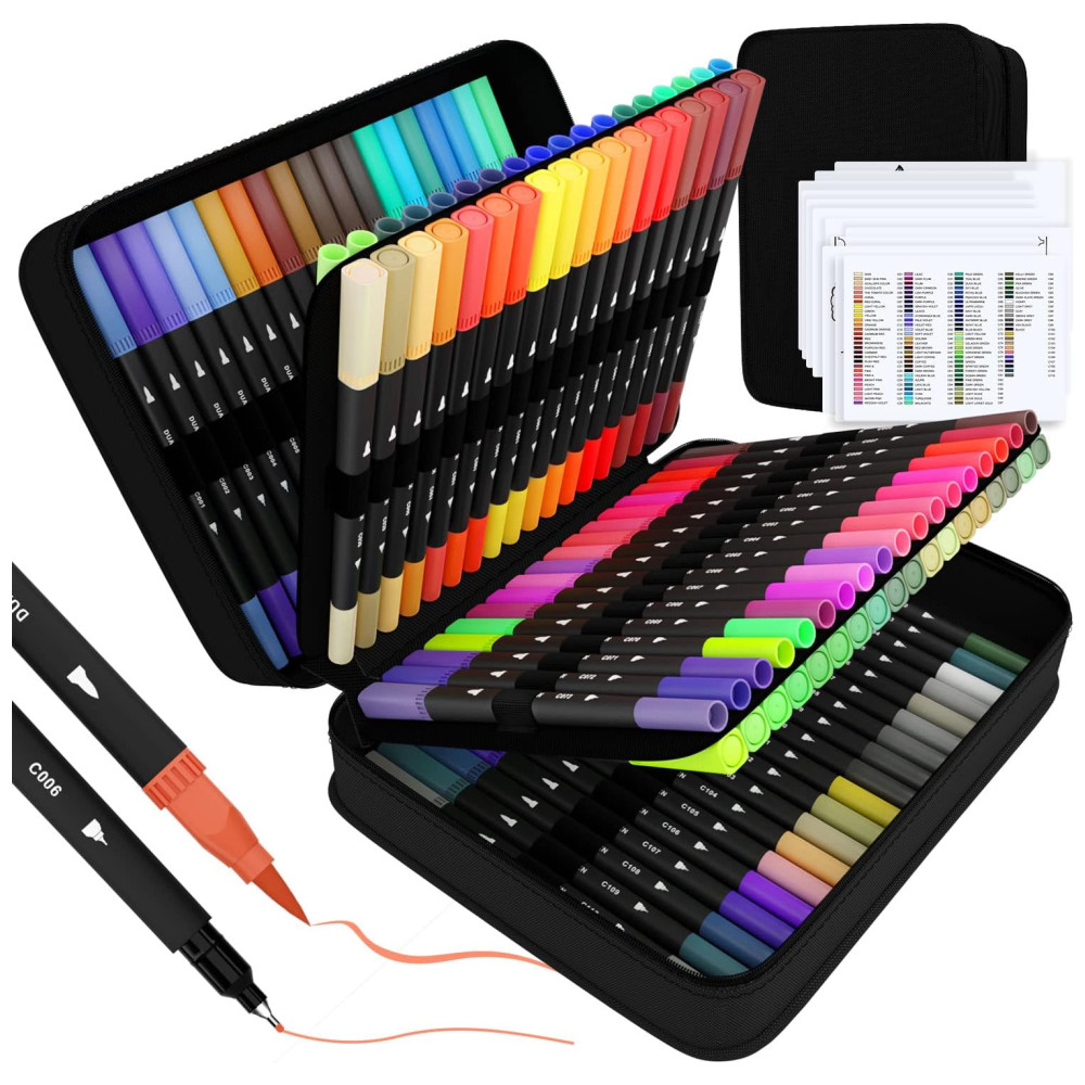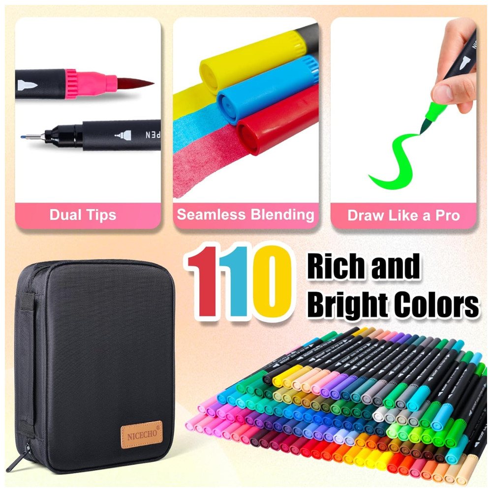 CORES VIBRANTES Você nunca ficará sem possibilidades ou opções de cores com este conjunto de marcadores de cores de luxo. Cada conjunto inclui 110 variedades de cores numeradas, SEM duplicatas. E misture lindamente para adicionar dimensão à sua arte e crie uma que você nunca teve antes