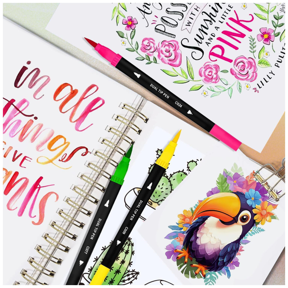 SUA E DE ALTA QUALIDADE Com tinta bem pigmentada à base de água, você pode trazer cores ricas à sua criatividade artística. A ponta de fibra especial é fácil de estratificar e misturar cores sem se preocupar com manchas. Perfeito para colorir livros, esboços, ilustrações, planejador, caderno, calendário, assinar projetos de arte e muito mais
