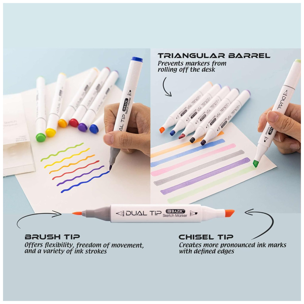 Design de ponta dupla. Você pode usar a ponta do pincel de para varredura, detalhes, caligrafia ou a ponta do cinzel de traços largos de 6, para colorir rapidamente em grandes áreas.
