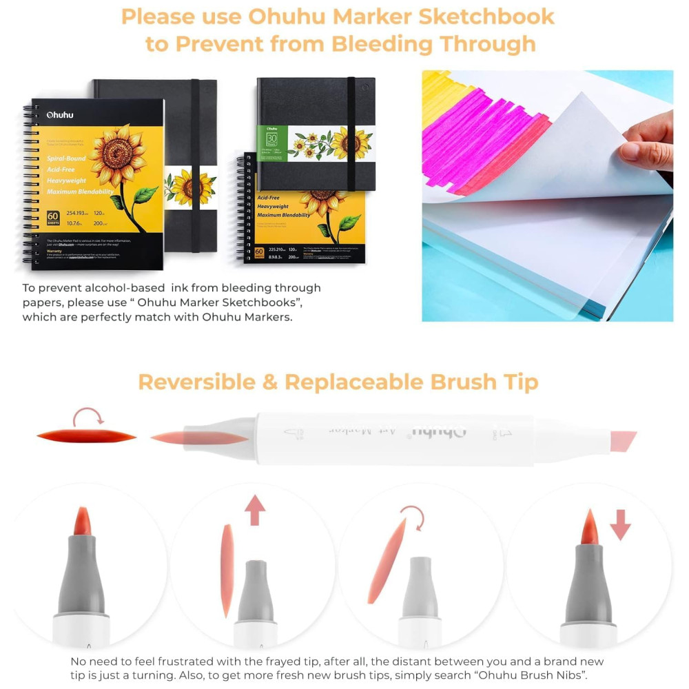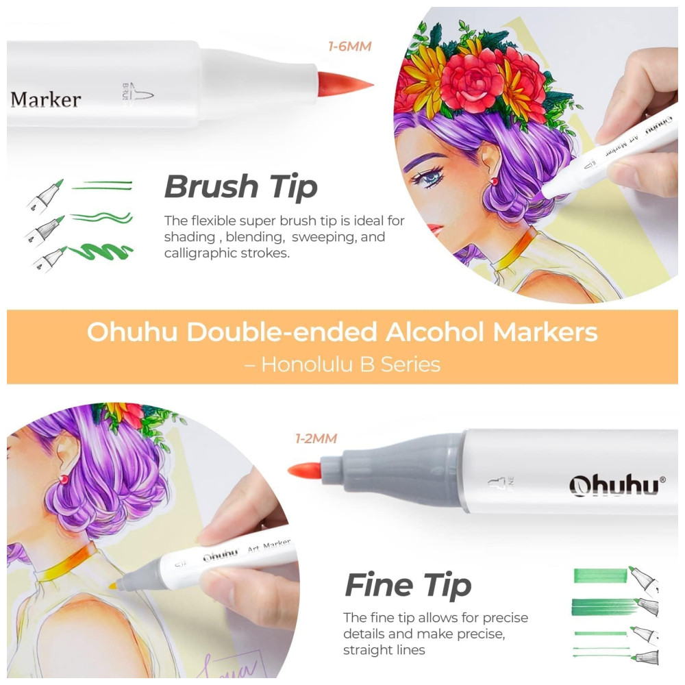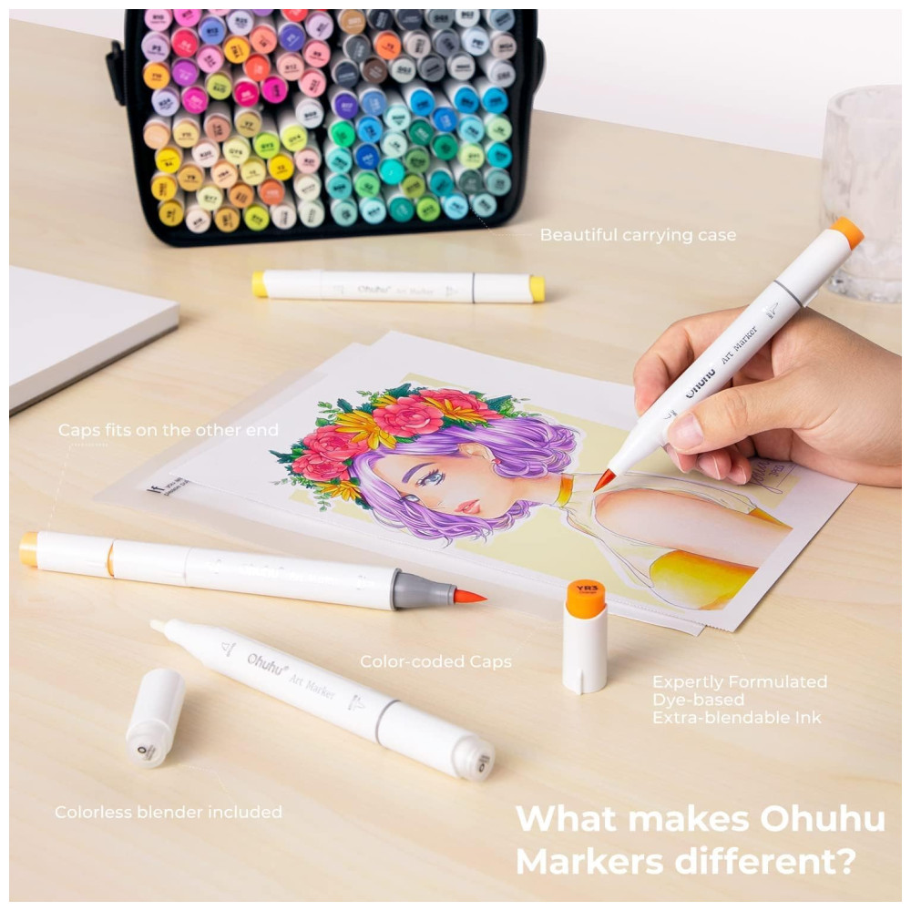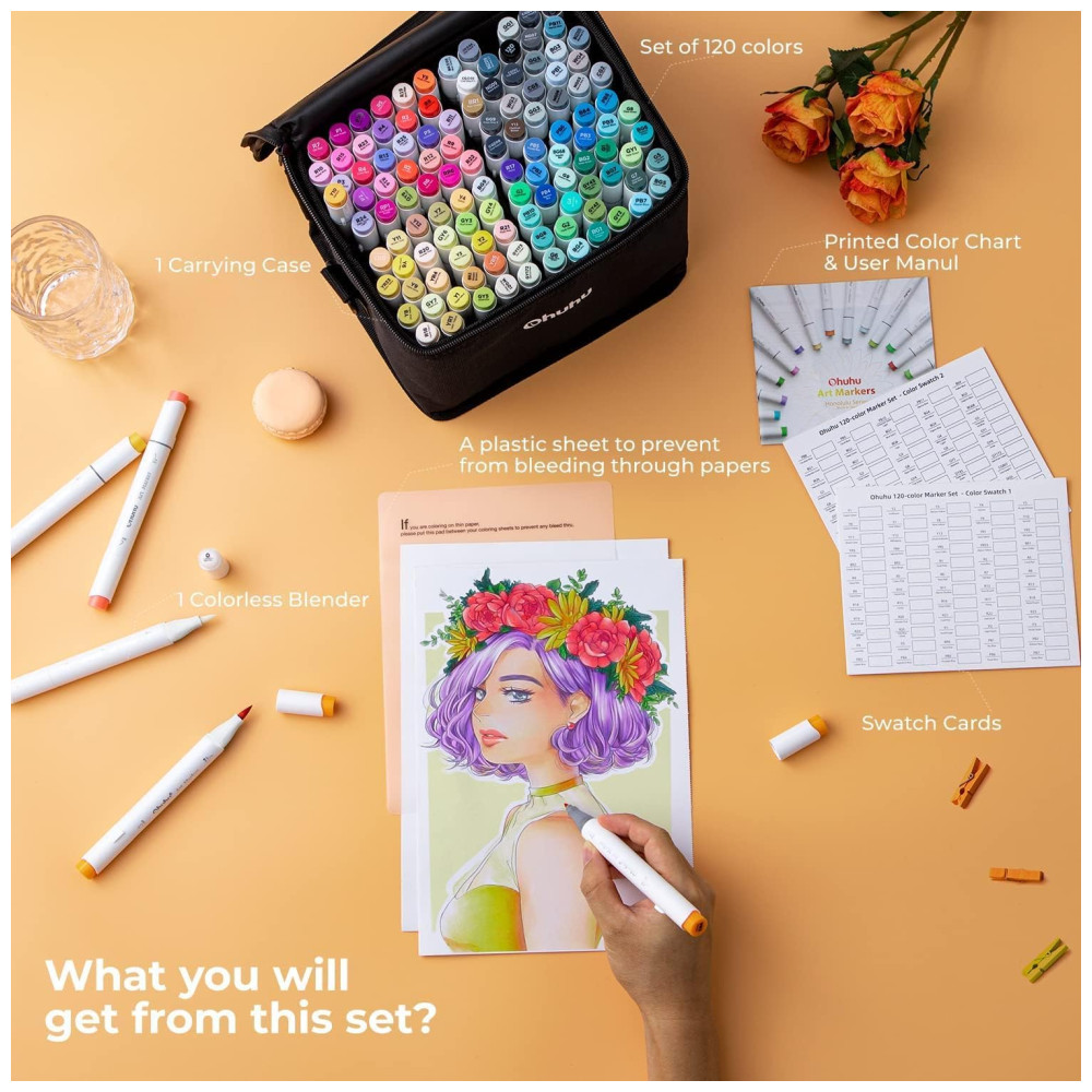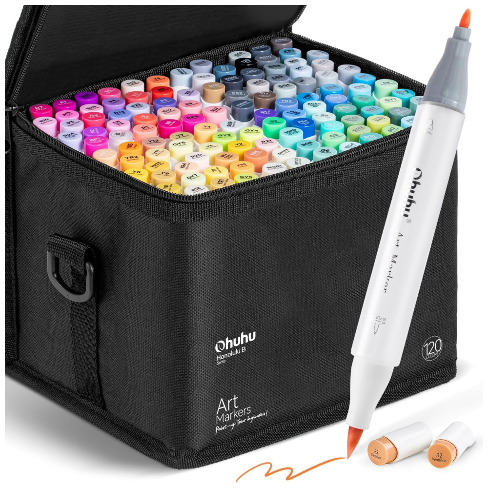 Kit de Canetas Profissionais com Estojo e Pontas Duplas para Crianças 120 Peças Ohuhu