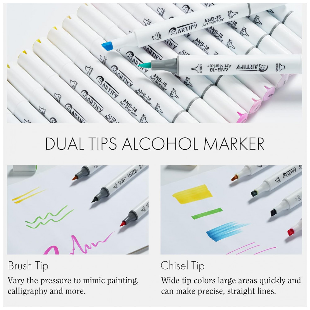 Kit de Canetas Profissionais com Pontas Duplas e Bolsa para Transporte 80 Peças ARTIFY