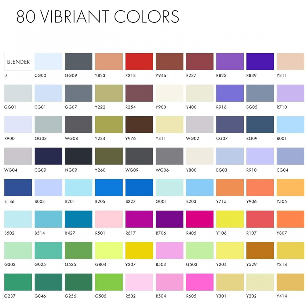 80 cores vibrantes Uma impressionante variedade de cores que inclui as mais usadas e muito mais. Excelente tinta pigmentada que oferece distribuição de nível profissional de cores ricas. Ótimo contraste, capacidade de mesclagem impecável, bom controle da saturação da tinta.