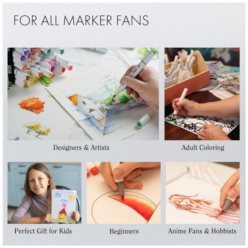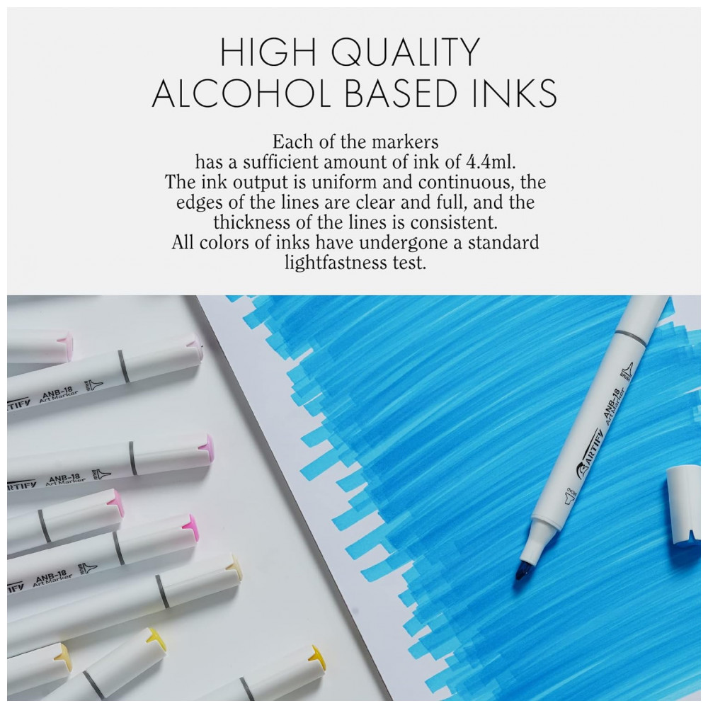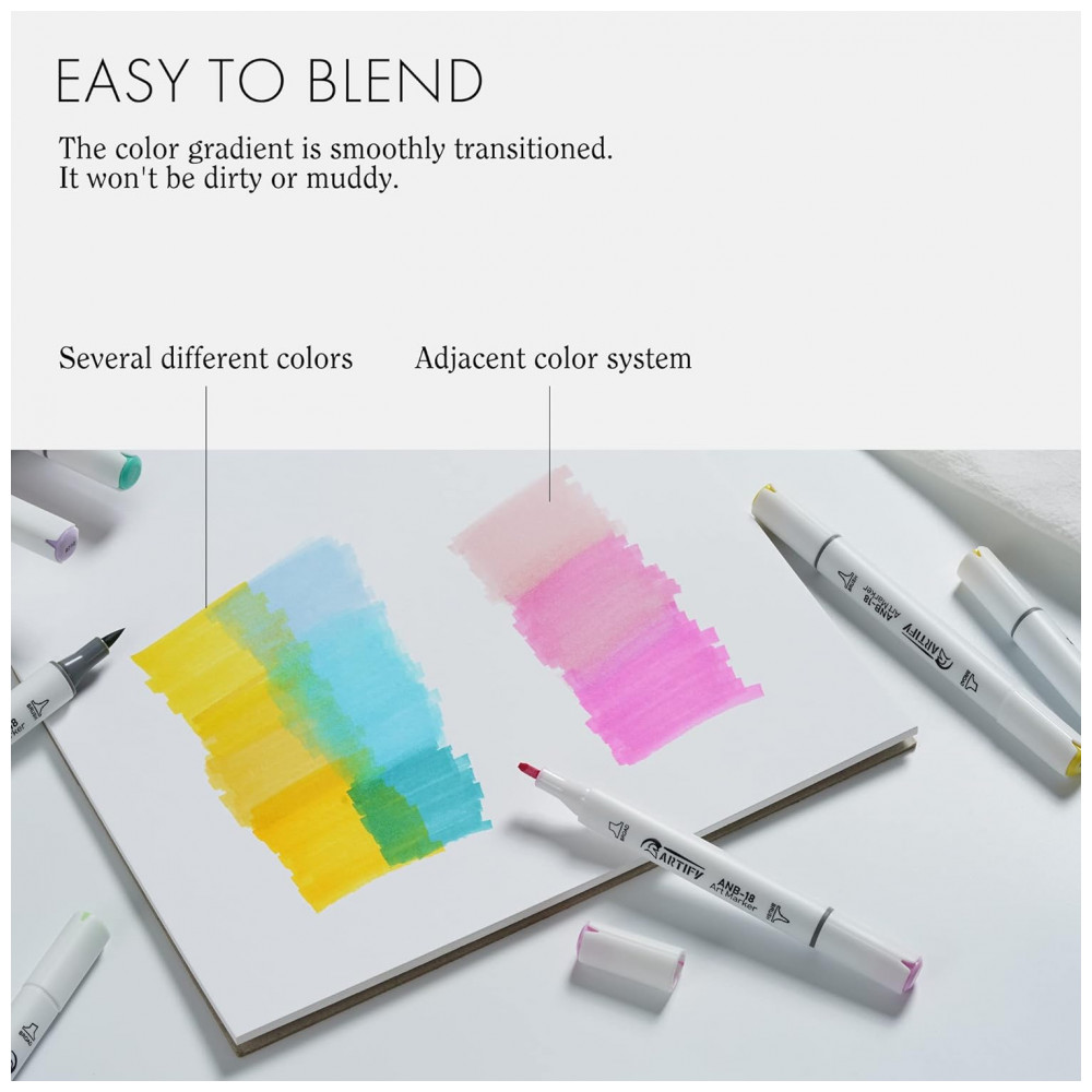 PONTAS DUPLAS Pontas largas e finas permitem vários estilos com facilidade, desde traços grandes até tons de mistura até detalhes precisos. Este conjunto oferece misturas perfeitas de cores de pele, oferecendo grande versatilidade e flexibilidade em seu desenho.