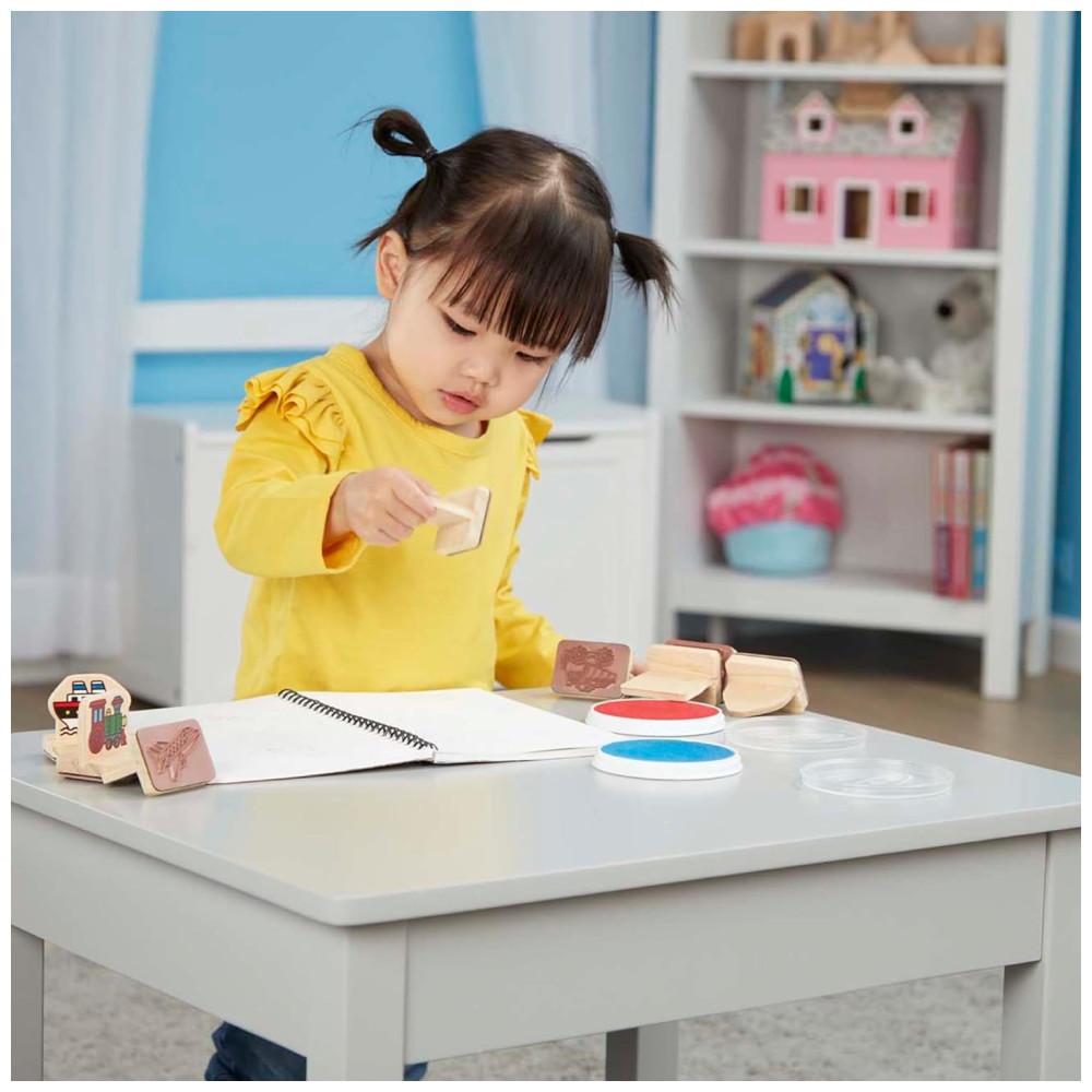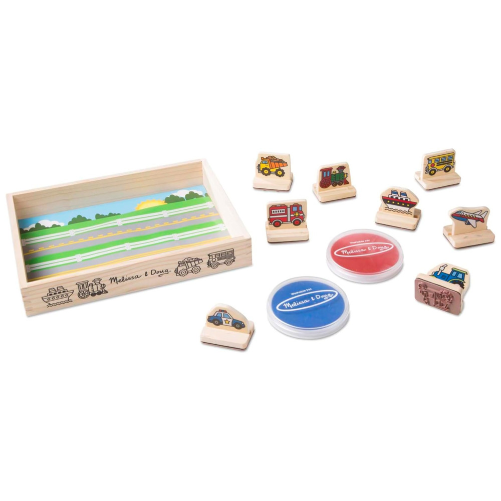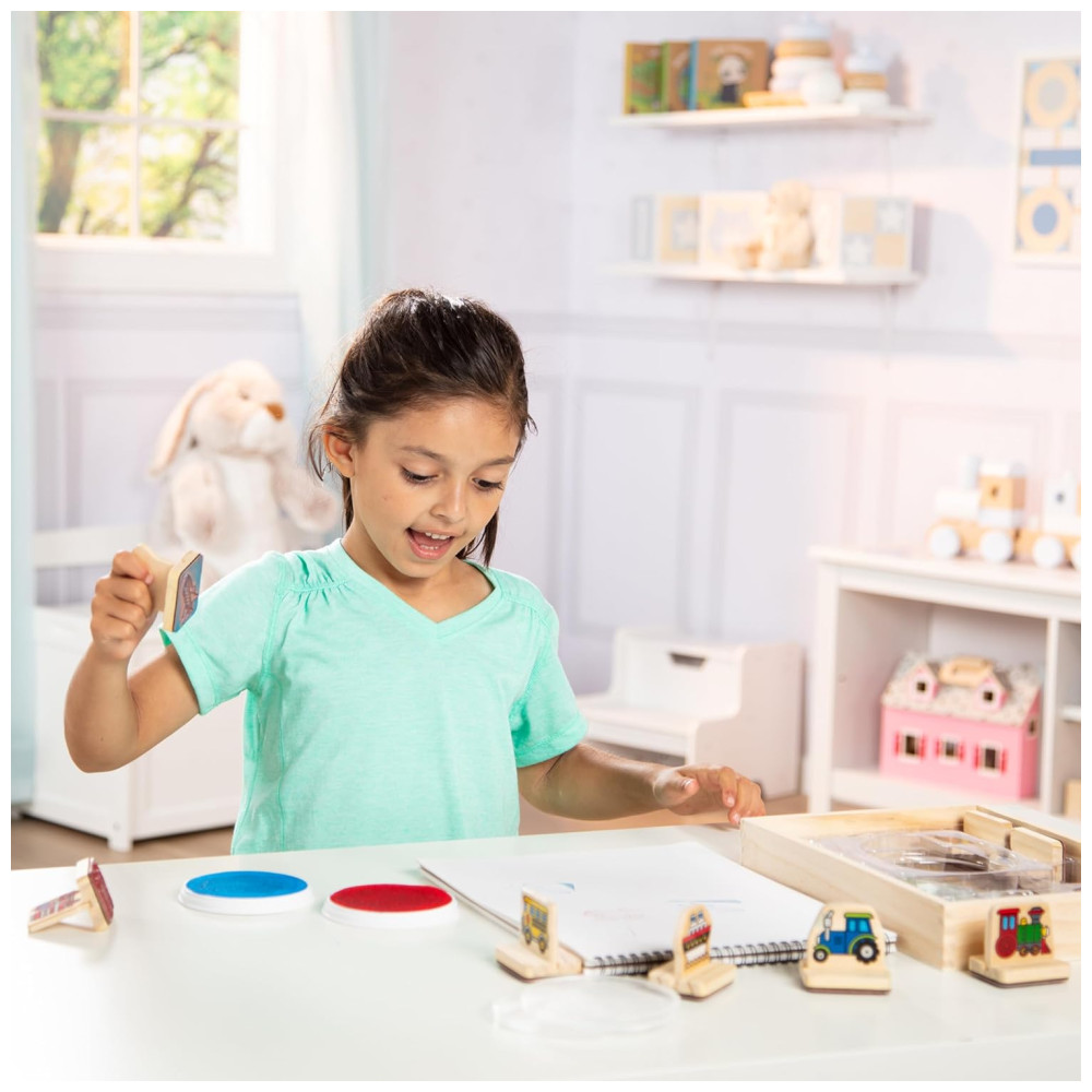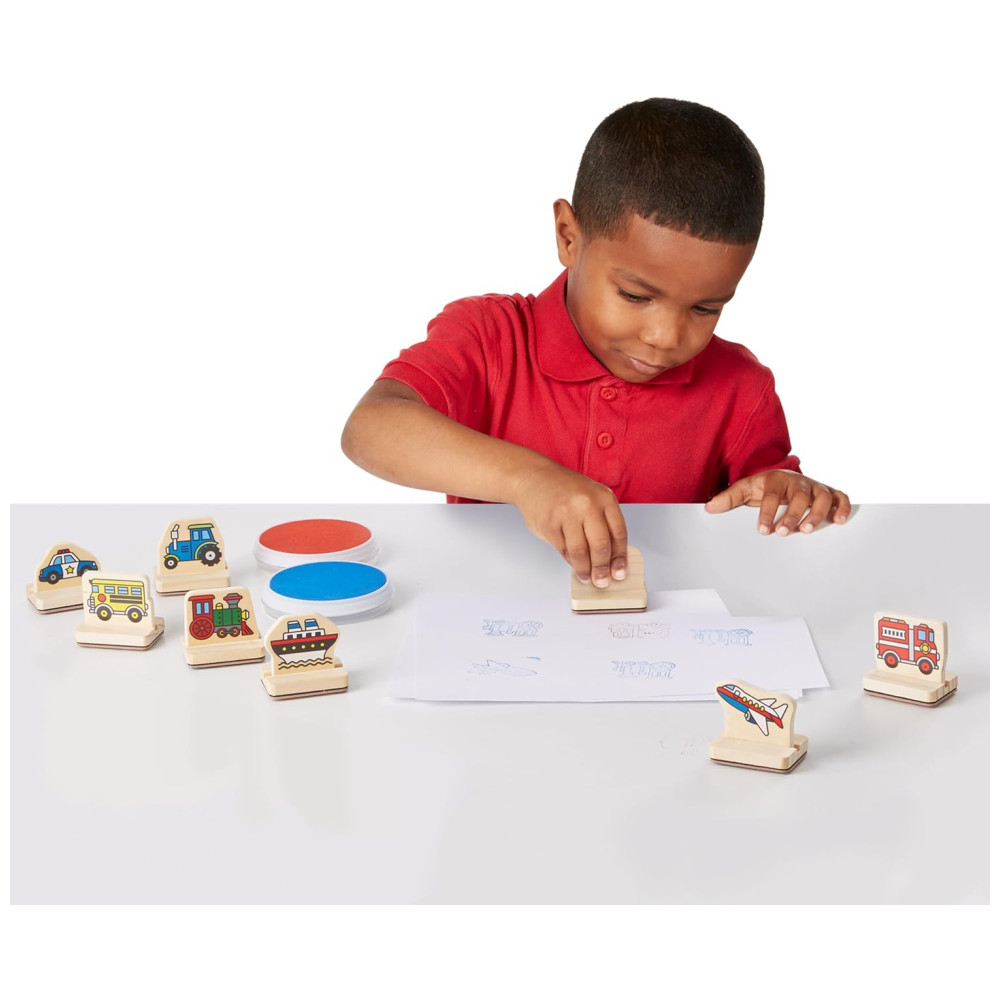 Kit de Carimbos Infantil de Madeira Tema Veículos com 8 Peças para Crianças Acima de 3 Anos Melissa & Doug