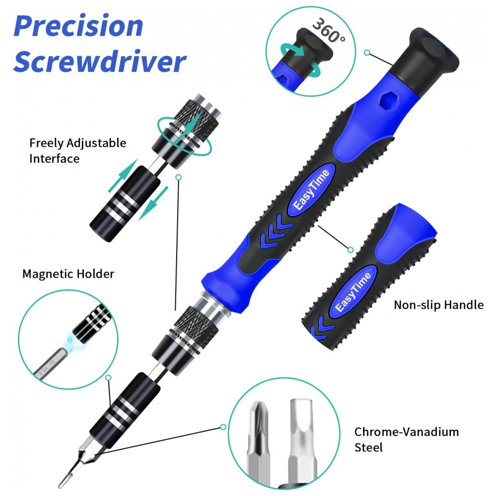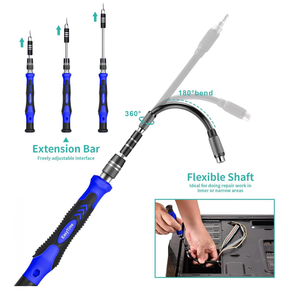 Kit de Chaves de Fenda de Precisão EasyTime 140 Peças Azul 120 Bits CR-V Magnéticos