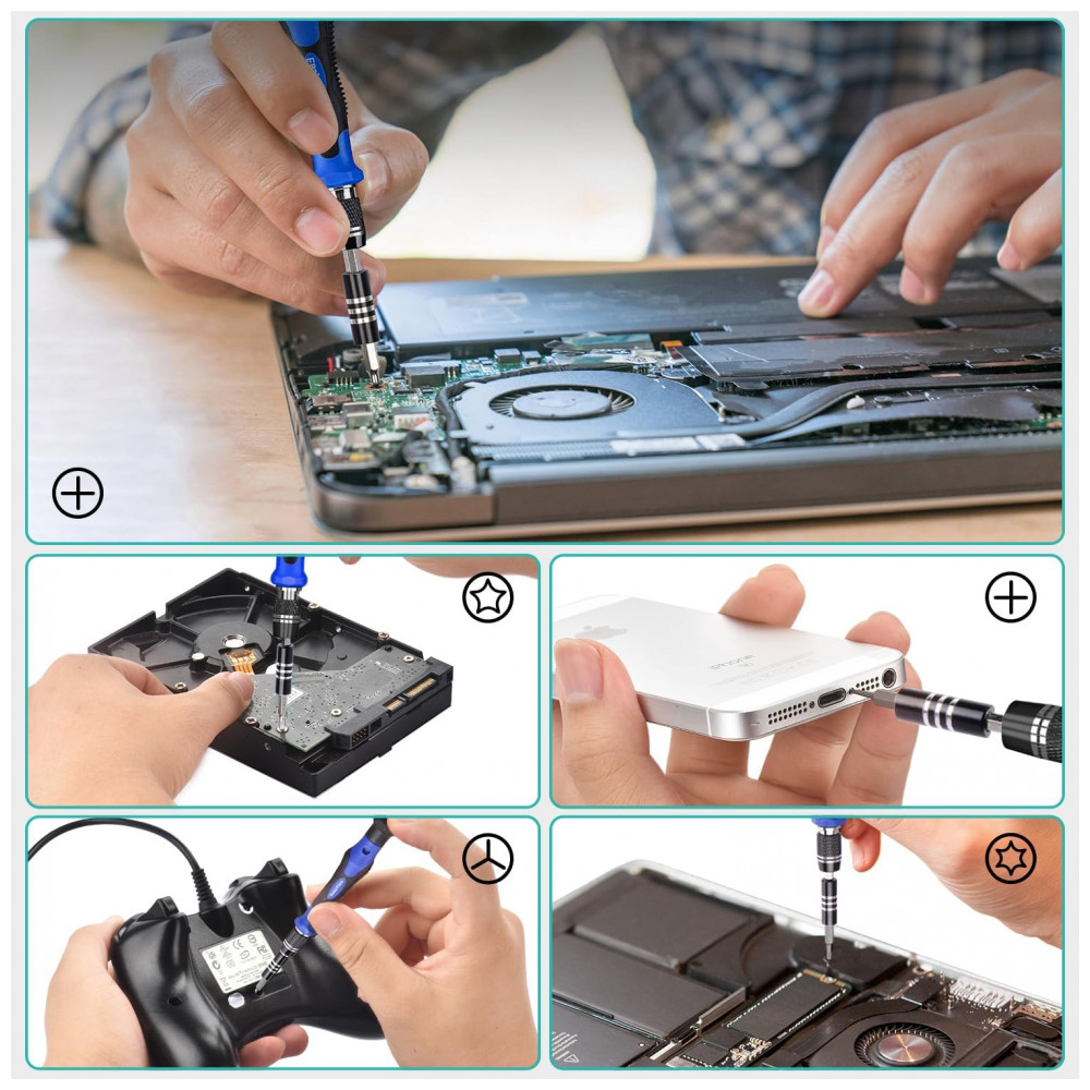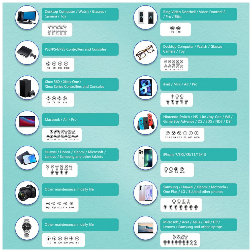 Compatível com montagem PC, substituição de peças laptops, reparo de celulares/tablets, consoles de jogos e manutenção de aparelhos domésticos.