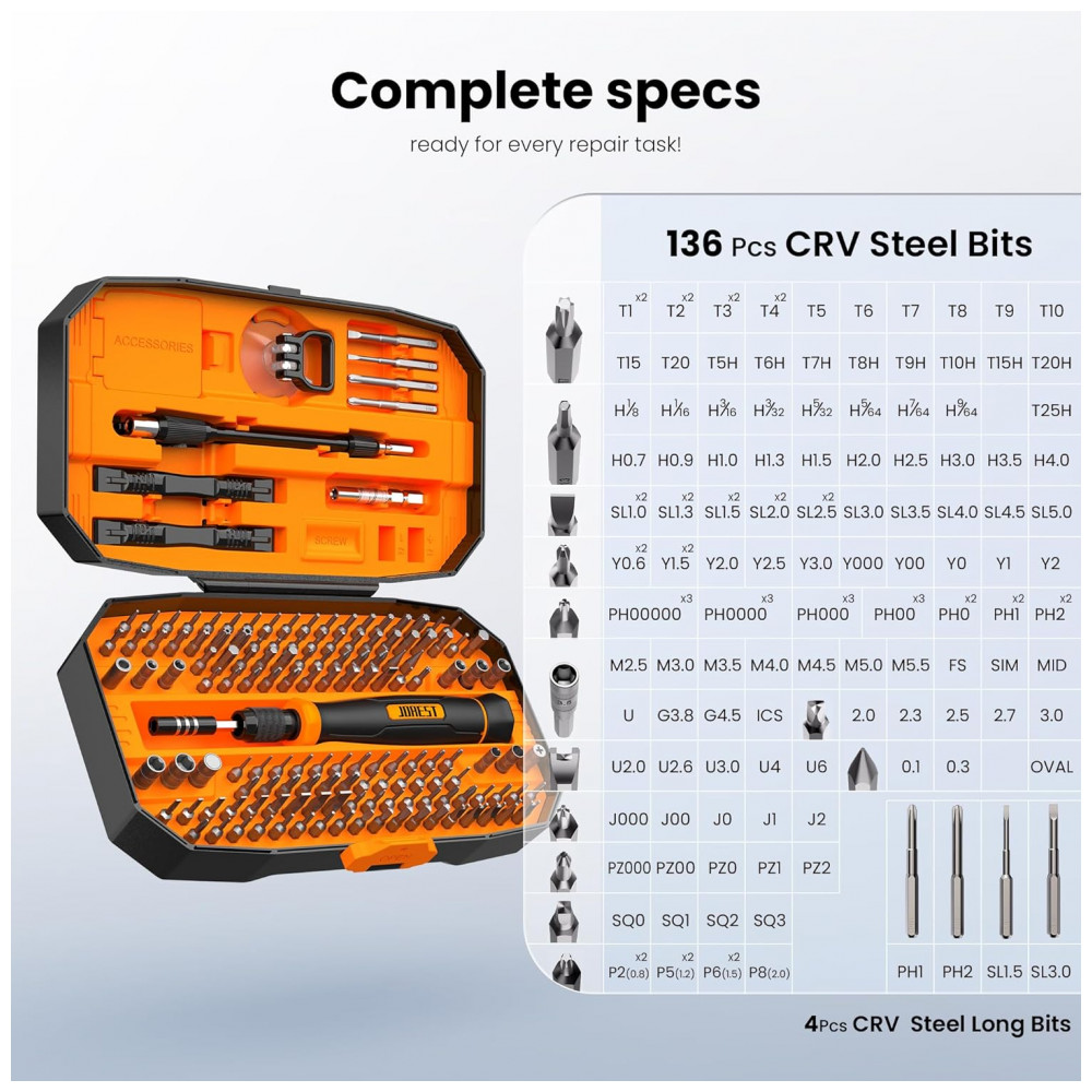 Kit de Chaves de Fenda de Precisão JOREST 152 Peças 1 Kit CR-V Colorido 140 Bits Torx Triwing Flexível