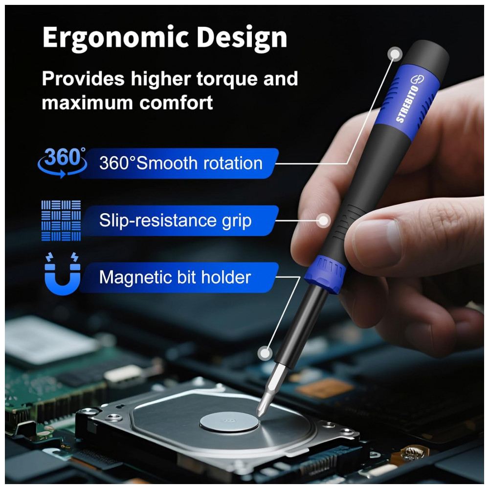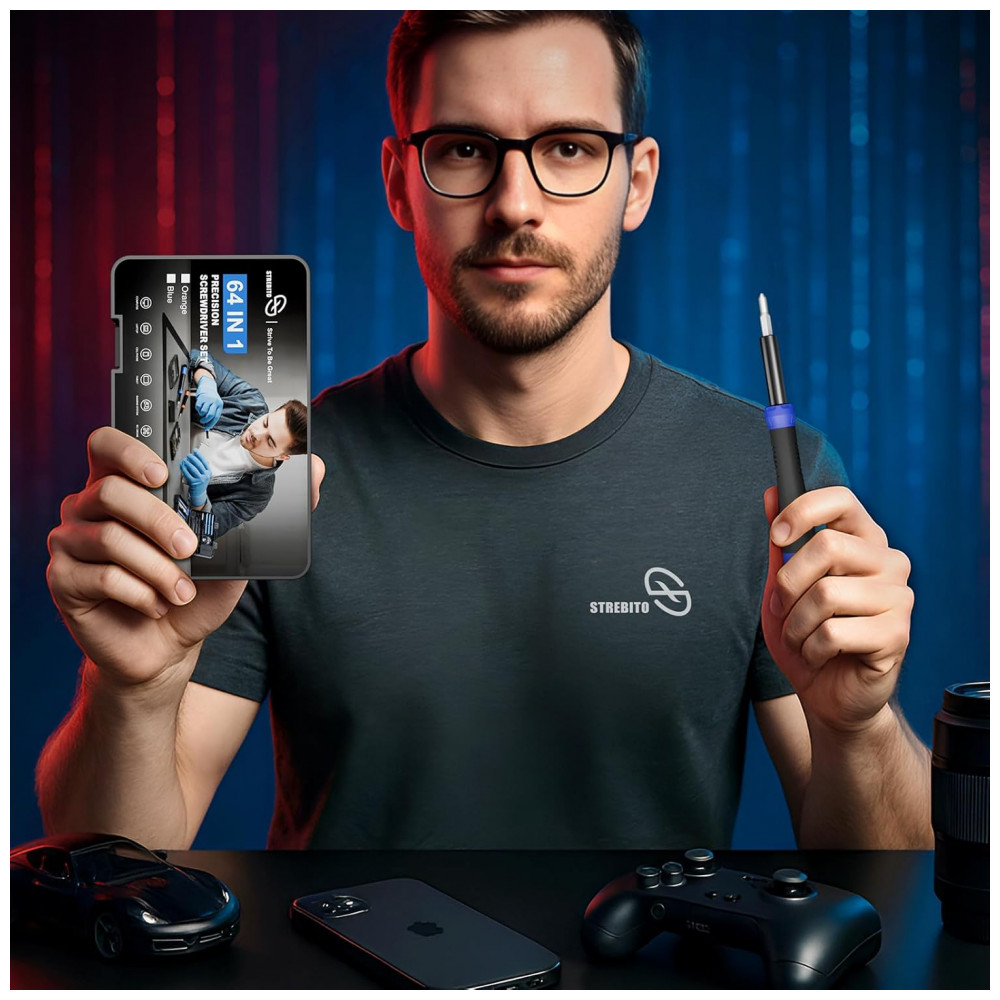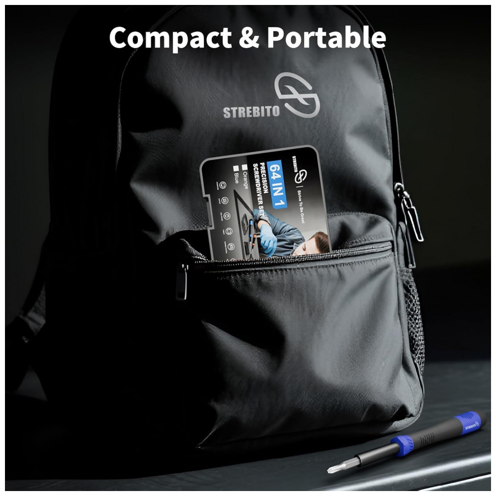 Kit de Chaves de Fenda de Precisão Pequeno STREBITO 64 Peças Azul – 48 Bits Magnéticos para Reparo de Eletrônicos