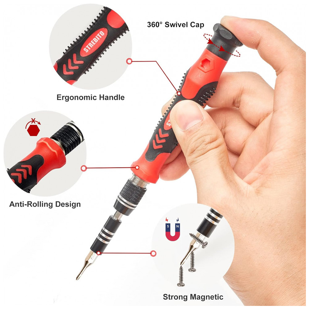 Kit de Chaves de Fenda de Precisão STREBITO 124 Peças Vermelho 101 Bits CR-V Magnéticos