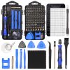 Kit de chaves de fenda de precisão STREBITO com 124 peças, incluindo 101 bits de 4 mm em aço cromo vanádio (60HRC) para reparos em smartphones Apple/Android, PC, laptops, iPhone, MacBook, PS5/PS4/PS3, Xbox, tablets, iPad, relógios e óculos. Ferramentas complementares como magnetizador/demagnetizador, pinça ESD, tapete magnético, ferramentas de abertura, escova e panos atendem desmontagens técnicas completas em eletrônicos.