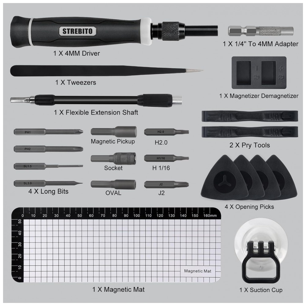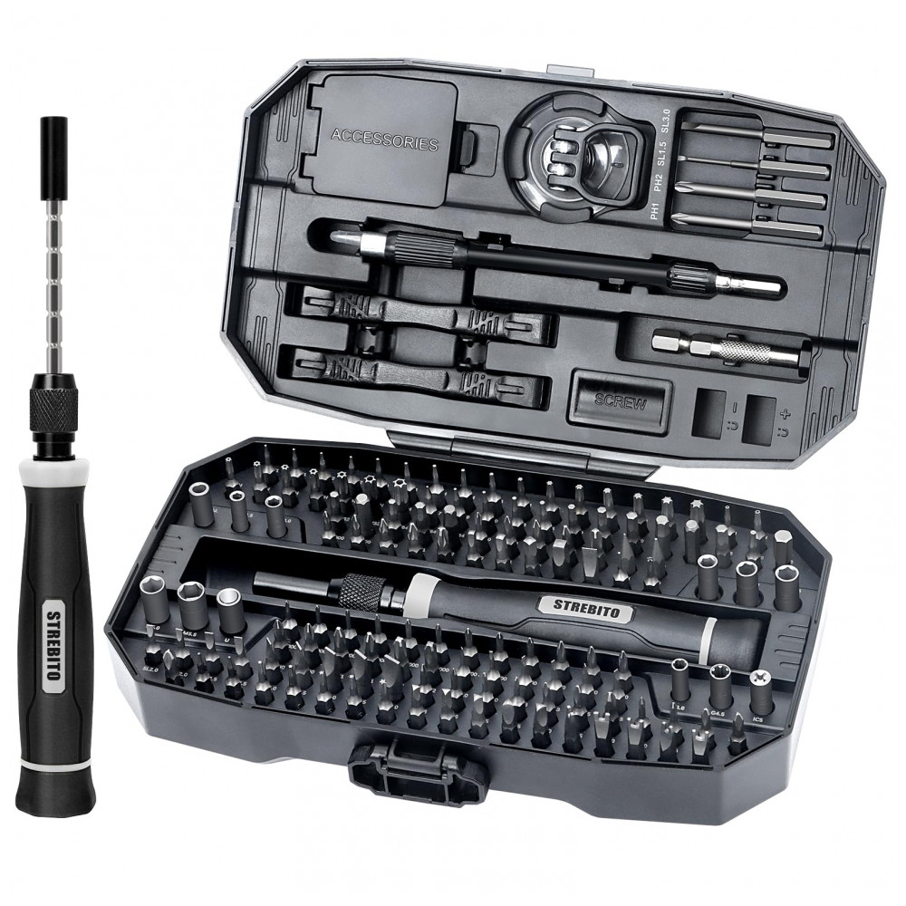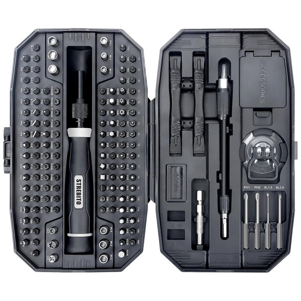 Kit de Chaves de Fenda de Precisão STREBITO 153 Peças Preto – 140 Bits Magnéticos para Reparo de Eletrônicos