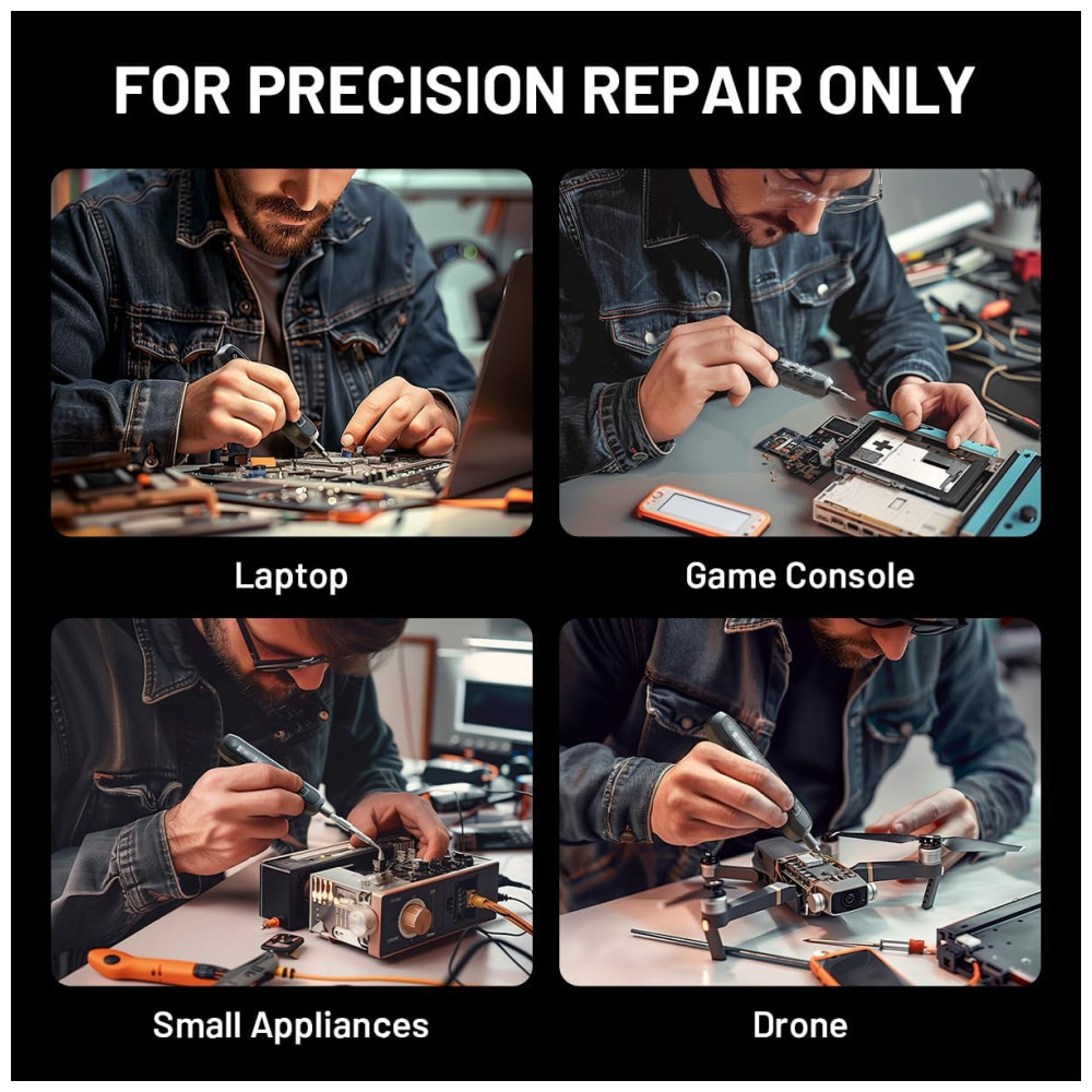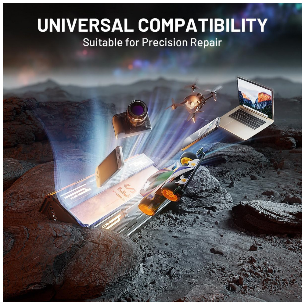 Compatível com iPhone, laptops, câmeras, relógios, computadores e dispositivos eletrônicos com parafusos de precisão variados.