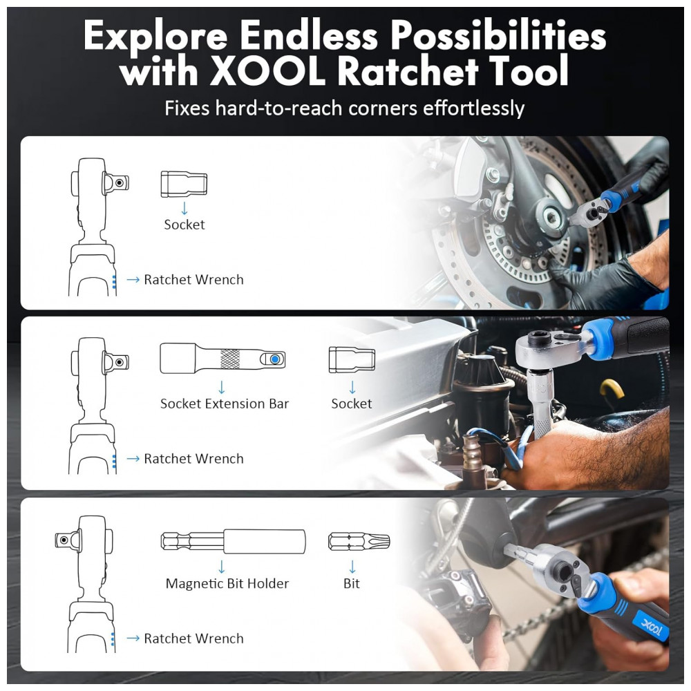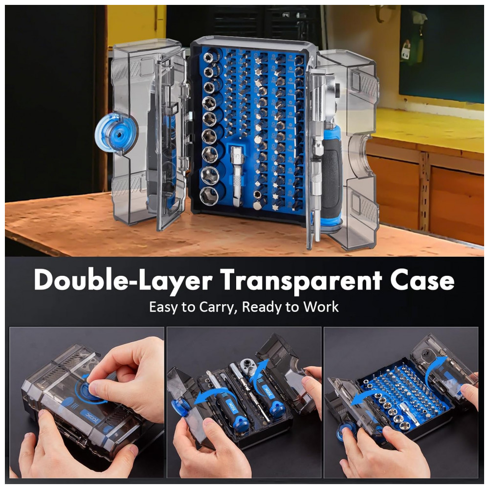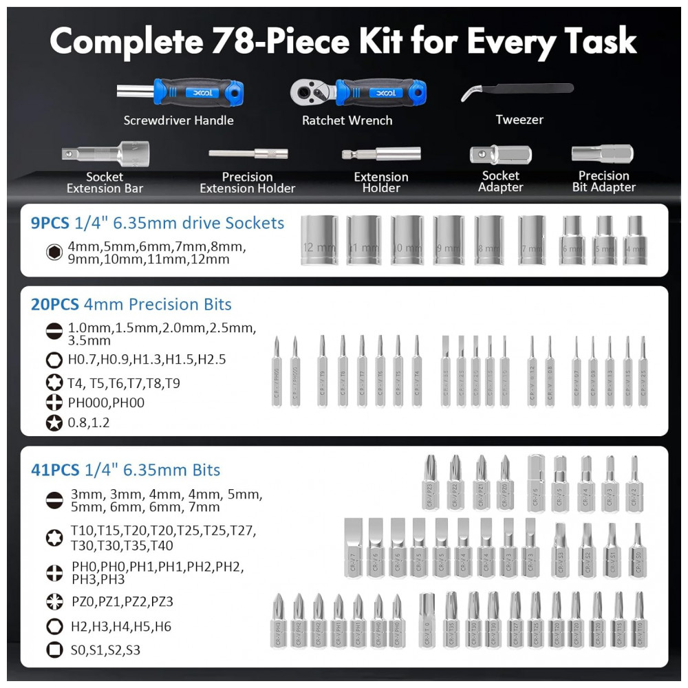 Kit de Chaves de Fenda Ratchet XOOL 78 Peças Azul CR-V 41 Bits Precisão + 20 Precisão + 9 Soquetes