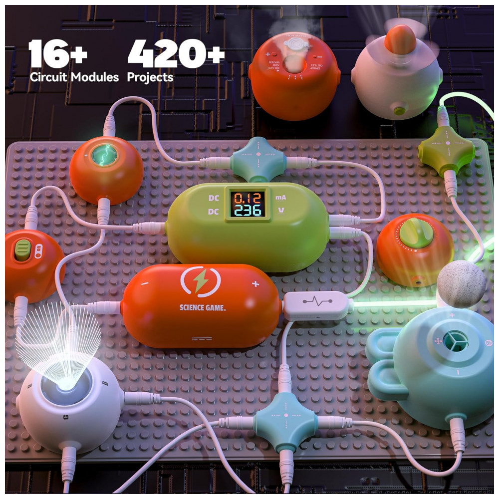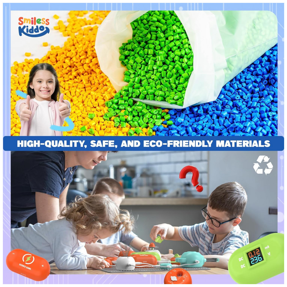 Kit de Ciência e Eletrônica para Crianças SMILESSKIDDO com Mais de 420 Projetos 35 Peças de Circuitos – Brinquedo Educacional STEM