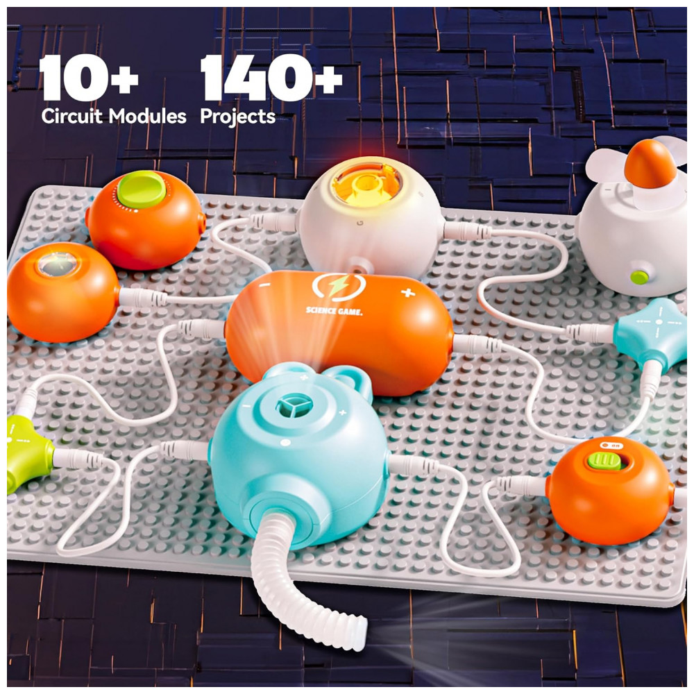 Kit de Ciência e Eletrônica SMILESSKIDDO para Crianças – 140 Projetos STEM 10 Peças de Circuitos Brinquedo Educativo para Idades de 3 a 12 Anos