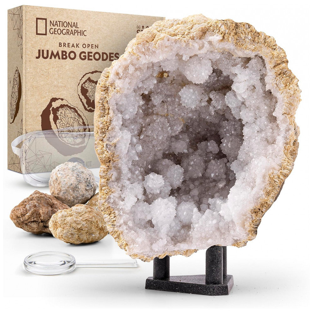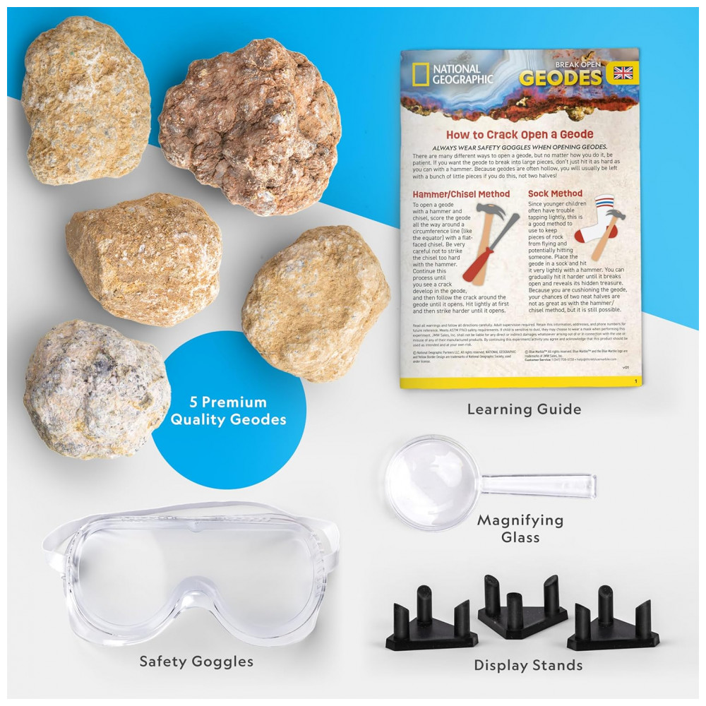 Kit de Ciências da Terra NATIONAL GEOGRAPHIC Break Open 5 Jumbo Geodes com 5 Geodos Extra Grandes Premium com Cristais Óculos Blue Marble