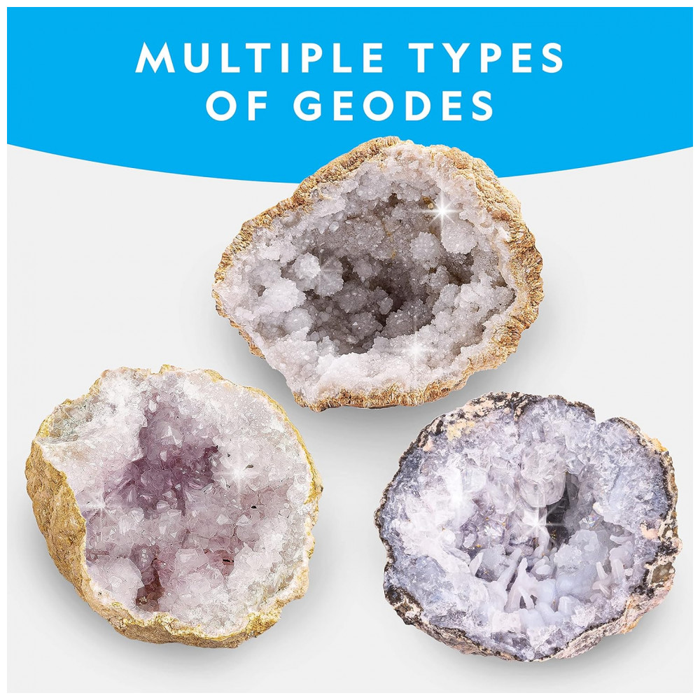 DESCUBRA GEODOS GRANDES COM CRISTAIS: Este super kit de ciências inclui 5 geodos extra grandes, ainda por abrir, para quebrar em casa! Cada geodo é do tamanho de uma bola de tênis e contém cristais incríveis no interior! 100% NATURAL: As crianças vão adorar a emoção de abrir esses 100% geodos naturais e examinar a beleza natural em seu interior. Esta atividade STEM enfatiza a descoberta divertida de forma prática! EXIBA SEU TESOURO: Use os 3 suportes de exibição incluídos para mostrar seus cristais e geodos favoritos. Uma lupa também está inclusa para explorar detalhadamente o interior dos geodos. GUIA DE APRENDIZAGEM COLORIDO: Aprenda sobre a fascinante ciência por trás da formação de geodos no Guia de Aprendizagem colorido. Os brinquedos educacionais da National Geographic tornam a ciência e a aprendizagem divertidas! BRINQUEDOS EDUCACIONAIS DE ALTA QUALIDADE: A National Geographic se orgulha de produzir os melhores brinquedos educacionais práticos de ciências, e todos os nossos produtos contam com um serviço excepcional. Se sua experiência não for menos do que extraordinária, vamos corrigir!