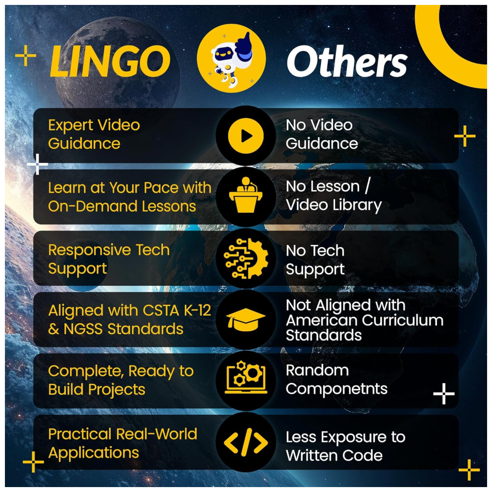 O kit de codificação STEM da LINGOs é uma excelente opção para quem deseja aprender a codificar de forma fácil e divertida. Com guias passo a passo e instruções visuais, mesmo iniciantes podem acompanhar facilmente as lições e criar projetos incríveis. Composto por 18 componentes, incluindo sensores, microcontrolador e placa de ensaio, o kit permite que os usuários construam seu próprio sensor de backup para um carro. As lições divertidas e envolventes do LINGO ensinam habilidades do mundo real por meio de projetos STEM, permitindo que os usuários desenvolvam suas habilidades de resolução de problemas e aumentem sua confiança. O kit é adequado para todas as idades e níveis de habilidade, com módulos individualizados de tutoriais em vídeo guiados por especialistas, permitindo que os usuários aprendam no seu próprio ritmo. É um presente perfeito para aniversários, feriados ou qualquer ocasião, permitindo que seus entes queridos desenvolvam novas habilidades e paixões.
