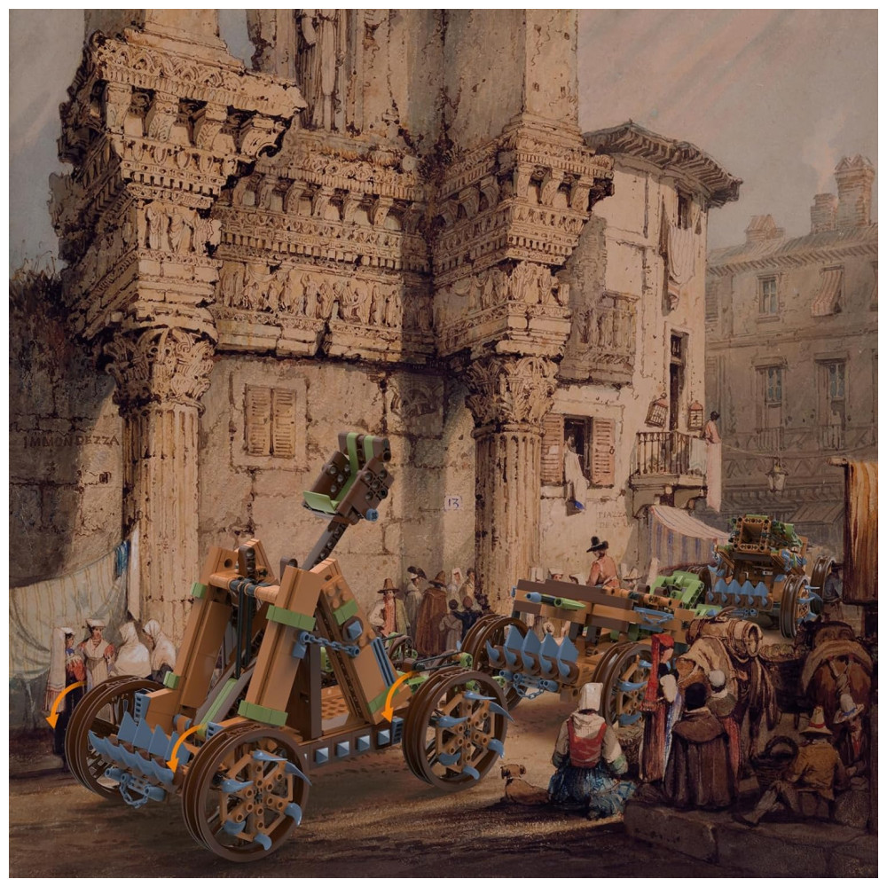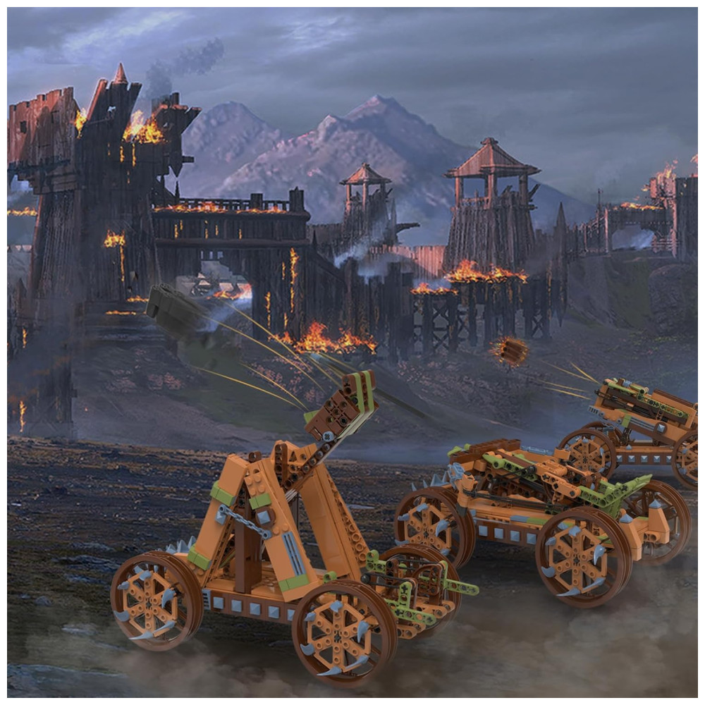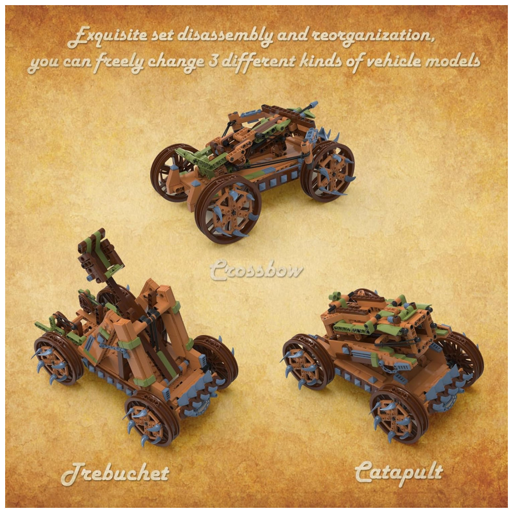 Kit de Construção 3 em 1 Catapulta Trebuchet Crossbow Medieval om 568 Peças JMBricklayer Marrom