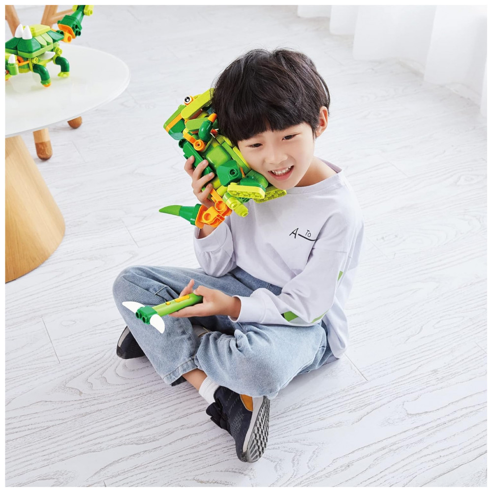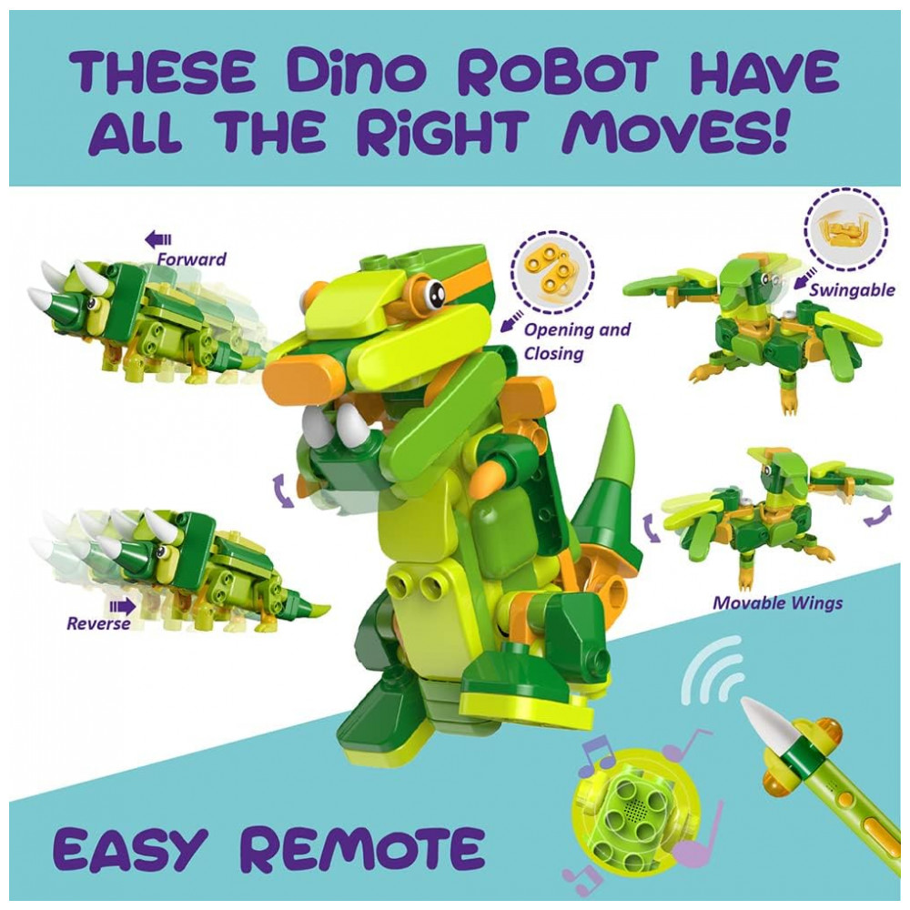 Uma nova experiência divertida de construção e jogo: Usando o controle remoto incluído, as crianças podem fazer suas criações de brinquedos de dinossauros avançarem e reverterem, além de criar sons audíveis divertidos Construir com peças diferentes não apenas criará dinossauros com aparências diferentes, mas também mudará a maneira como cada dinossauro se move A criatividade é incentivada até o controle remoto pode ser personalizado Seu filho certamente vai se apaixonar por estes brinquedos de aprendizagem perfeitos