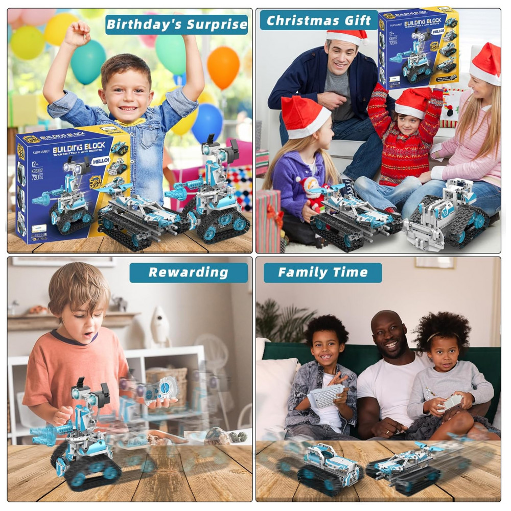 Presentes para crianças: O robô multifuncional é um brinquedo versátil e envolvente que combina a emoção dos blocos de construção com a diversão dos carros de controle remoto e da robótica. É uma excelente ferramenta para promover a criatividade, habilidades de resolução de problemas e educação em STEM, e certamente fornecerá horas de entretenimento para crianças e adultos, adequado para qualquer ocasião para crianças no Natal, Dia da Criança, aniversários e muito mais