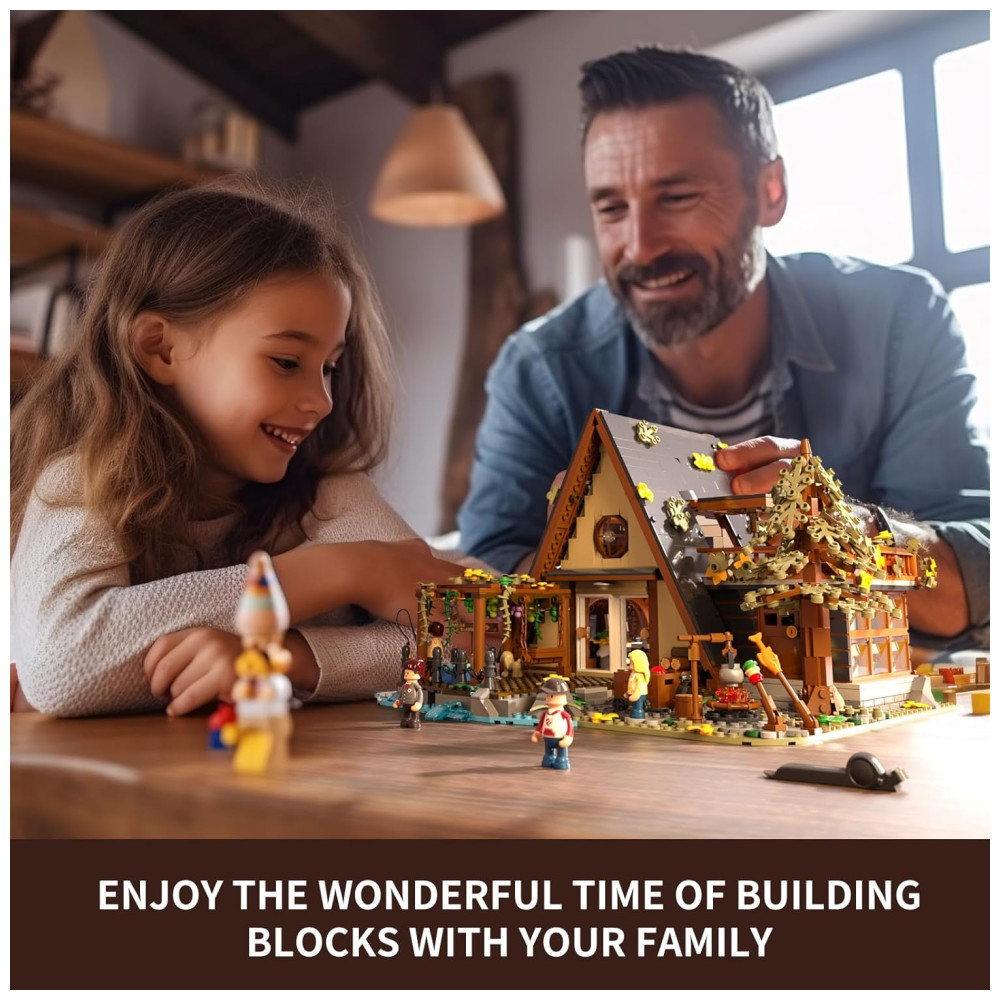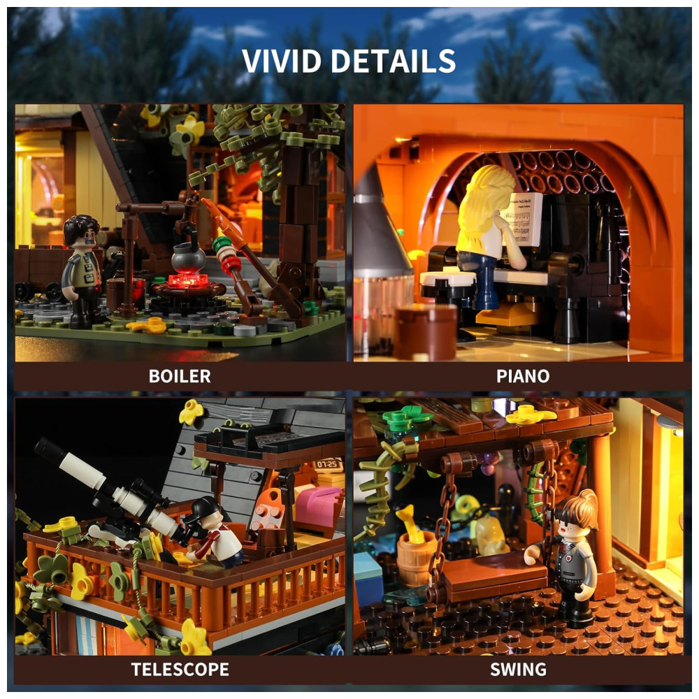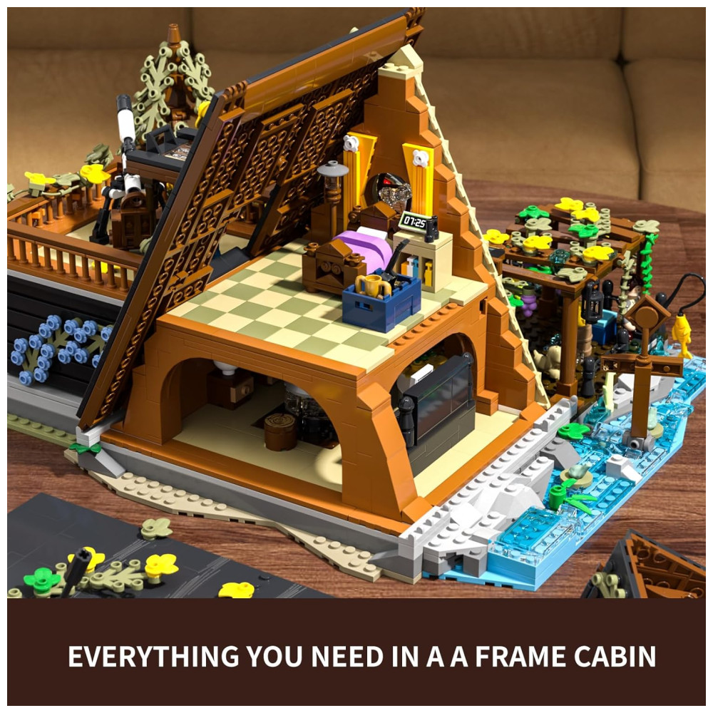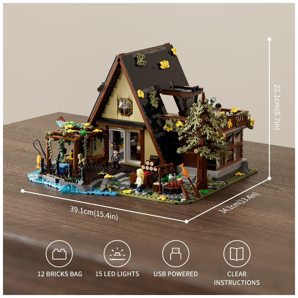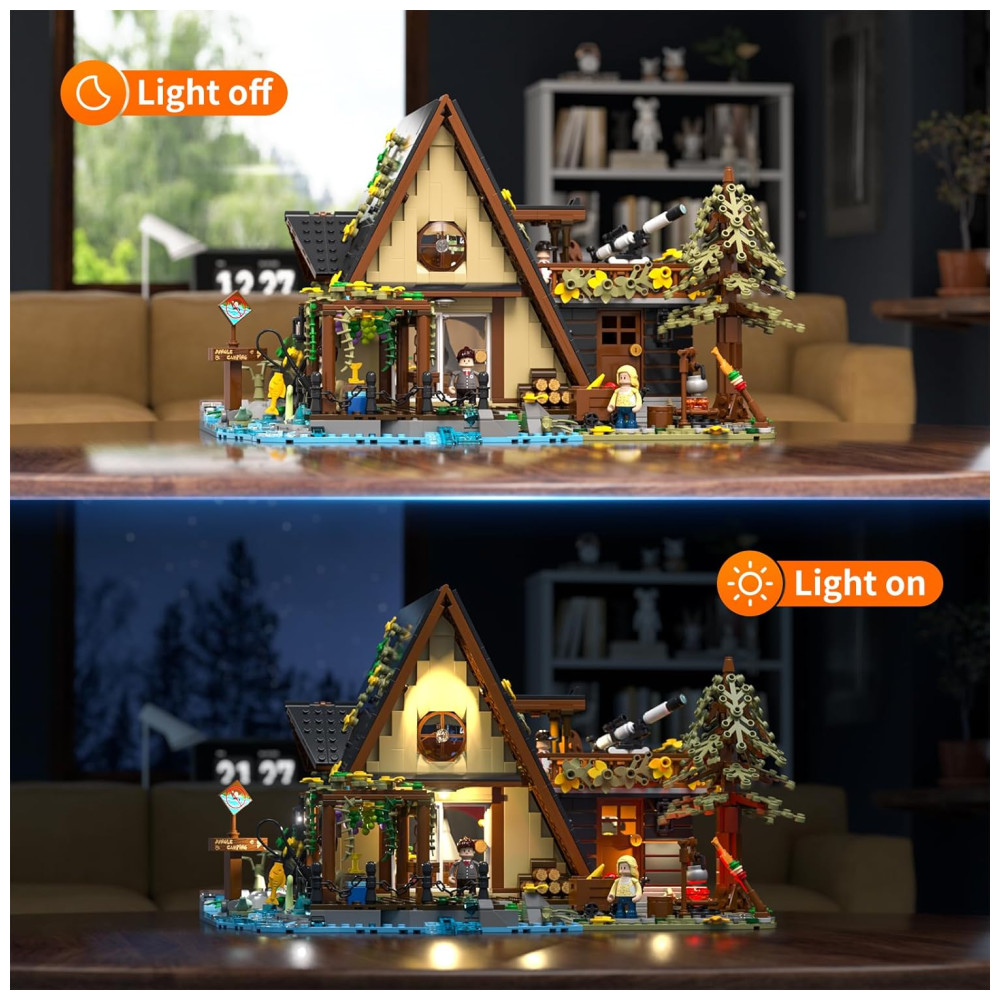 Mistura única de iluminação e blocos combinamos iluminação com blocos 2061PCS de uma forma inovadora para apresentar efeitos de iluminação impressionantes e mostrar a sensação caseira do chalé A frame com mais destaque.